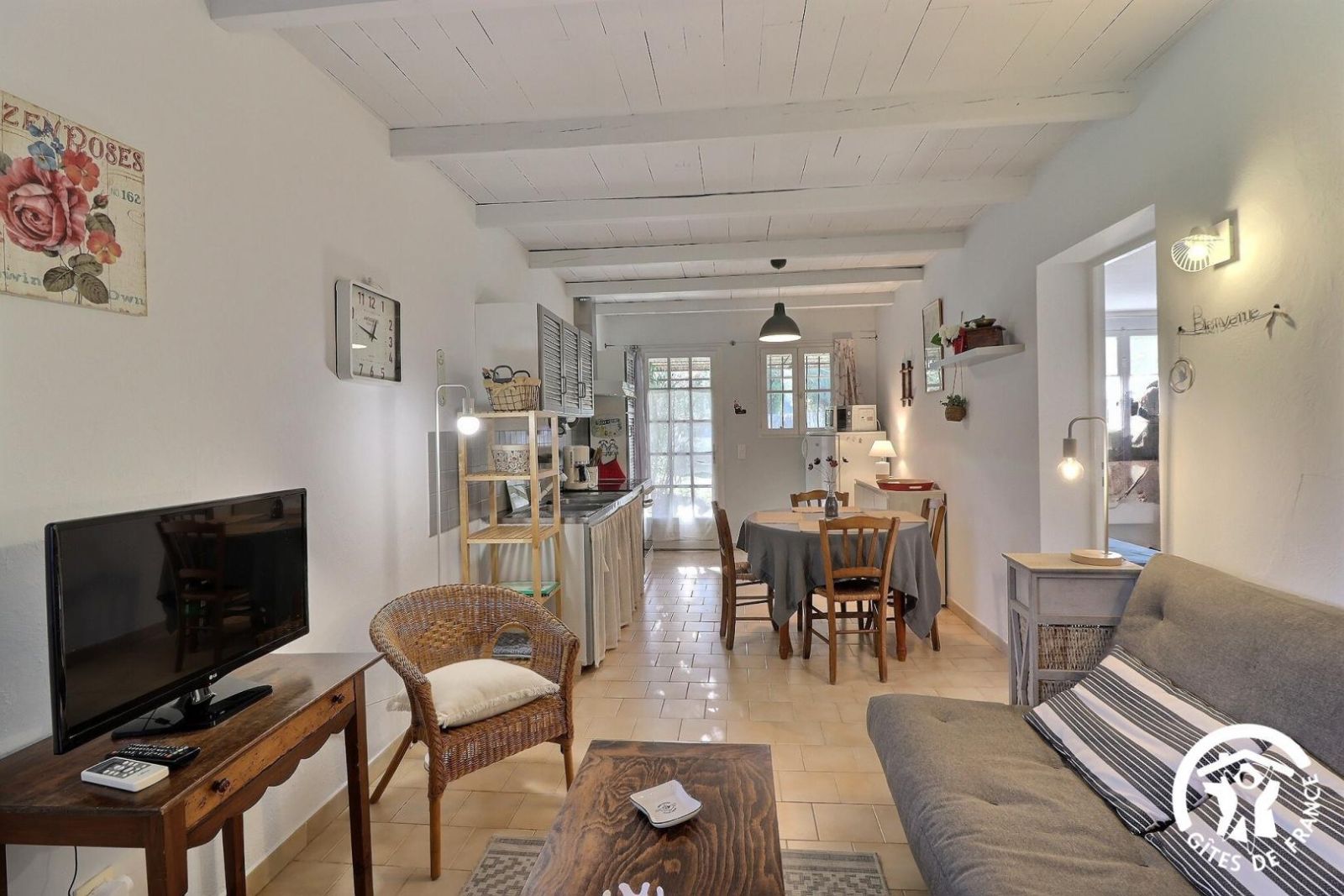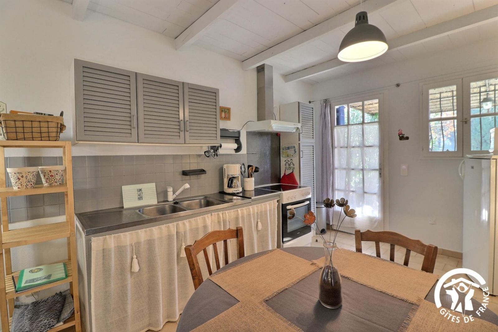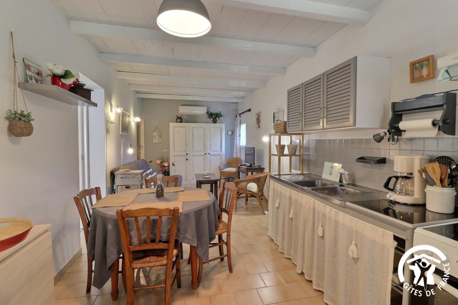 Situé à proximité du Mas familial provençal datant du XVIe siècle, gîte indépendant, à 2 km du centre ville (accessible à pied en évitant la route), en rez-de jardin. Quartier résidentiel. Promenades possibles sur le plateau de la Petite Crau et le long du Canal des Alpines à 200 m du Gîte.Parcours de santé à proximité. Pièce principale : coin cuisine et coin salon avec 1 canapé-convertible 2 personnes (type BZ) et Télévision . Clim Réversible (Pompe à Chaleur). Une vaste chambre avec 1 lit double (160x190) et 1 lit simple (90x190), penderie, commode, bureau. Salle d'eau avec cabine de douche et nombreux rangements. WC indépendant. Buanderie avec lave linge, petit lavabo, fer et table à repasser, rangements. Terrasse privative de 16 m² avec salon de jardin, parasol, transats, BBQ. Espace enherbé et arboré non clos. Vélos à disposition des résidents. Chaise haute et lit bébé sur demande. Électricité incluse dans le tarif. Une contribution au chauffage/climatisation de 12 € par semaine sera demandée selon la saison et l'utilisation. Autre Gîte sur place n°13G800101 Les Micocouliers.