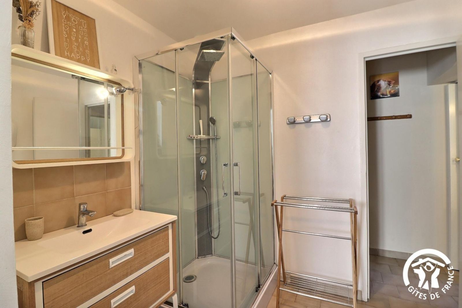 © Gîtes de France Salle d'eau avec cabine de douche et chauffage-sèche serviette