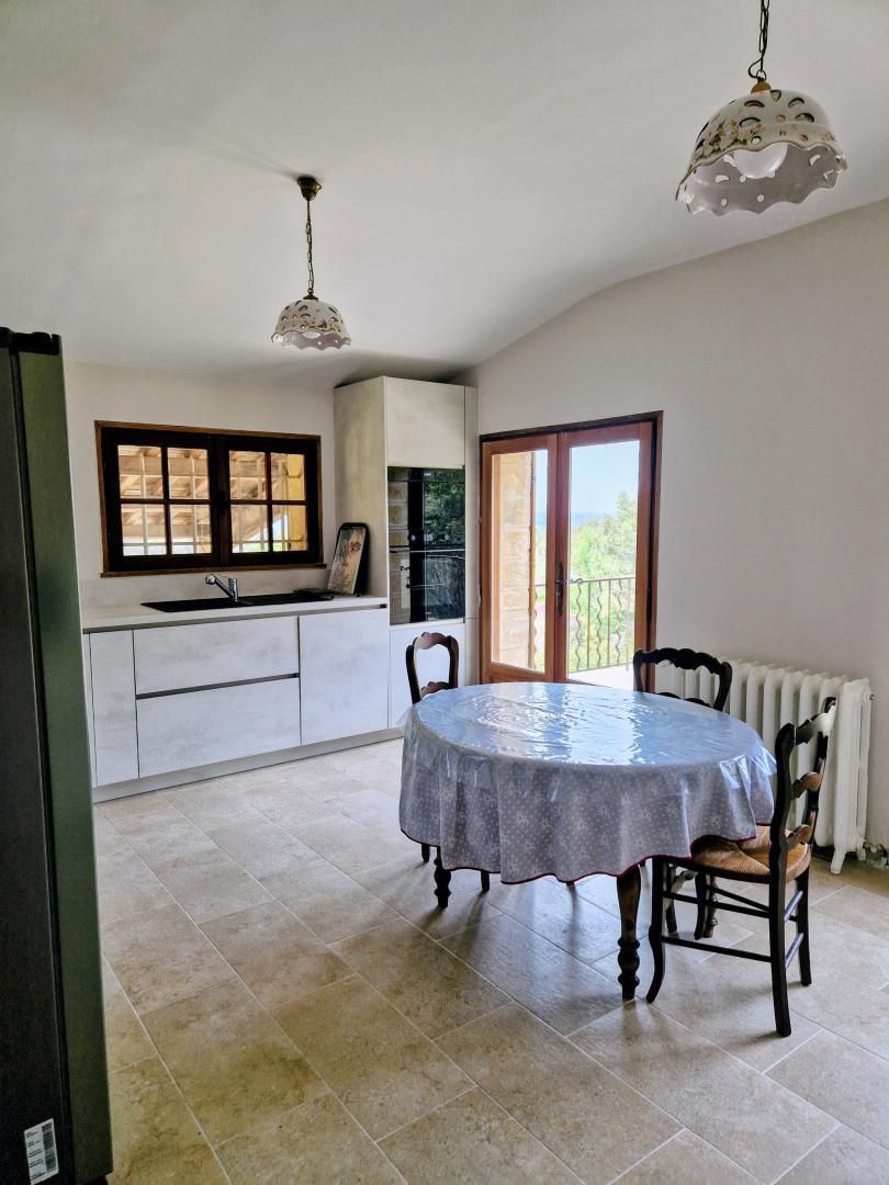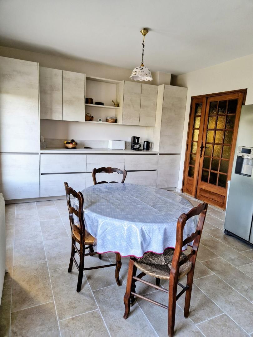 - salle de bain/WC avec baignoire - cuisine : plaque 3 feux induction, hotte aspirante, four, micro-ondes, lave-vaisselle, lave-linge, réfrigérateur américain, buffet, petit espace repas. La cuisine ouvre sur une terrasse côté nord.