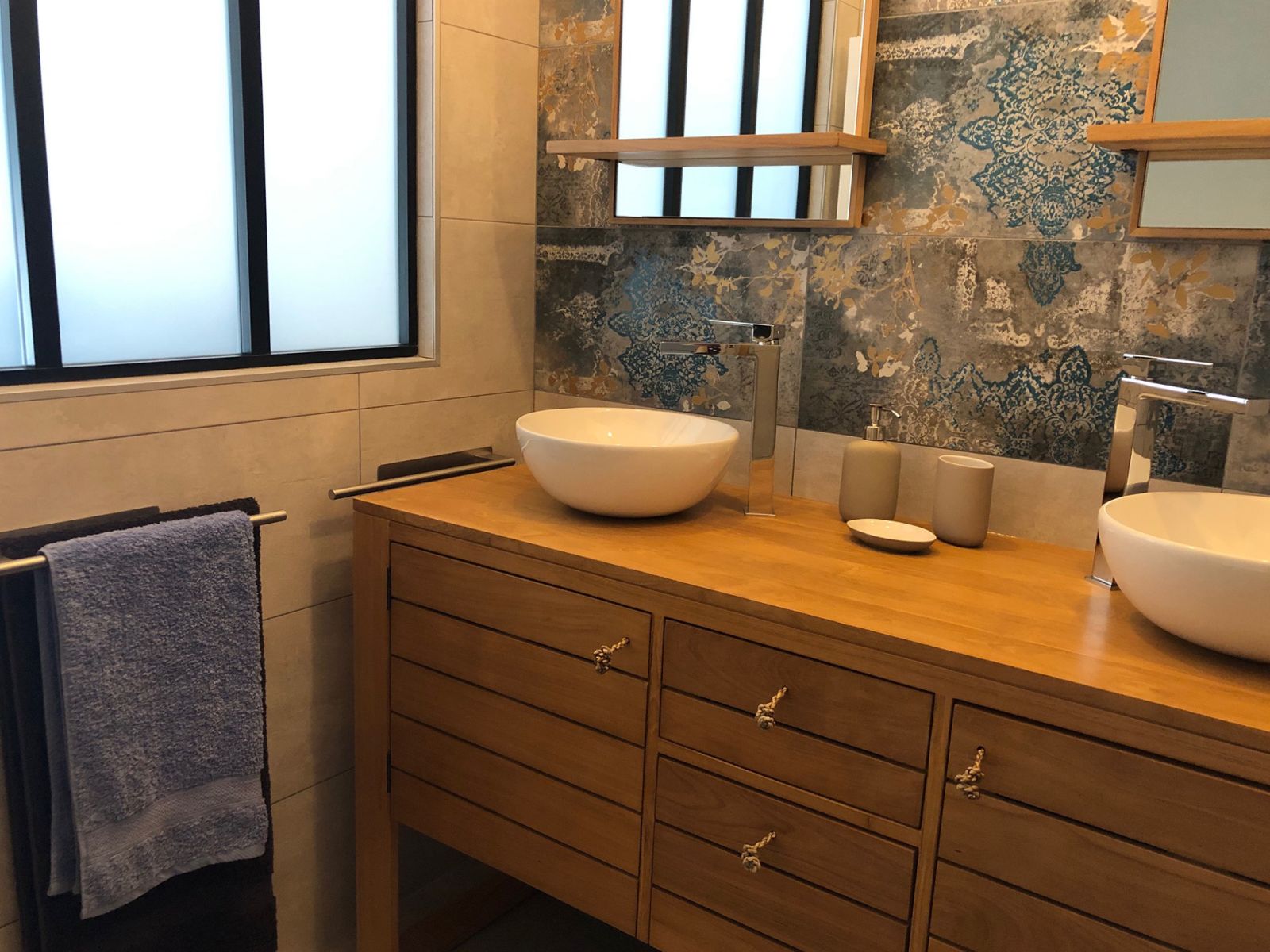- Le RDC composé d'une cuisine ouverte entièrement aménagée sur coin repas pouvant accueillir 4 personnes.