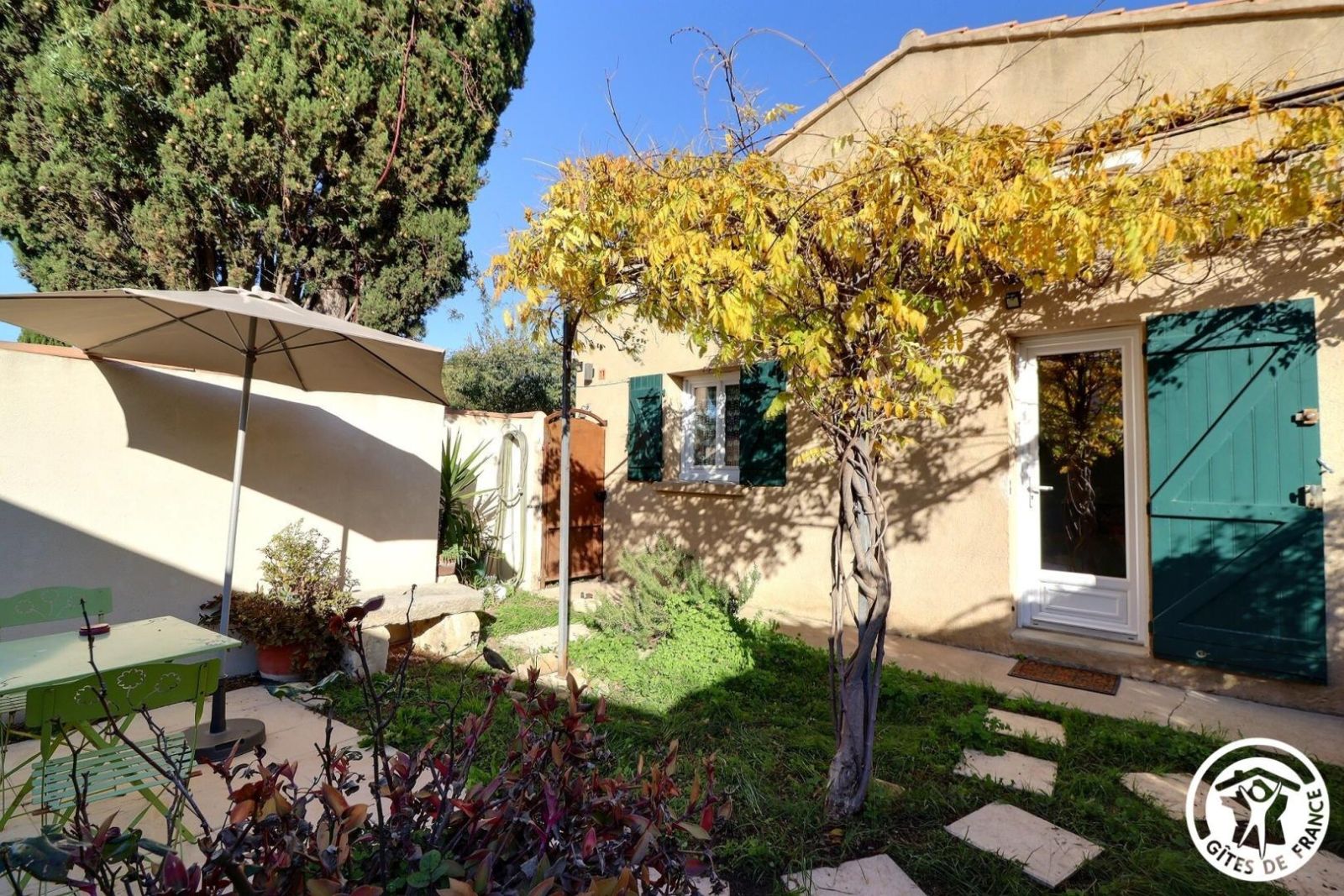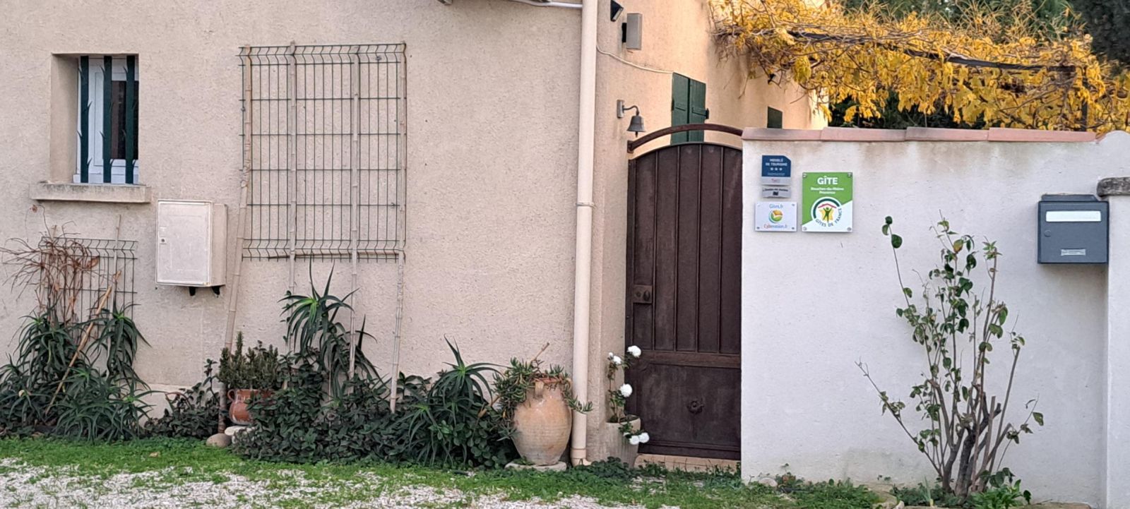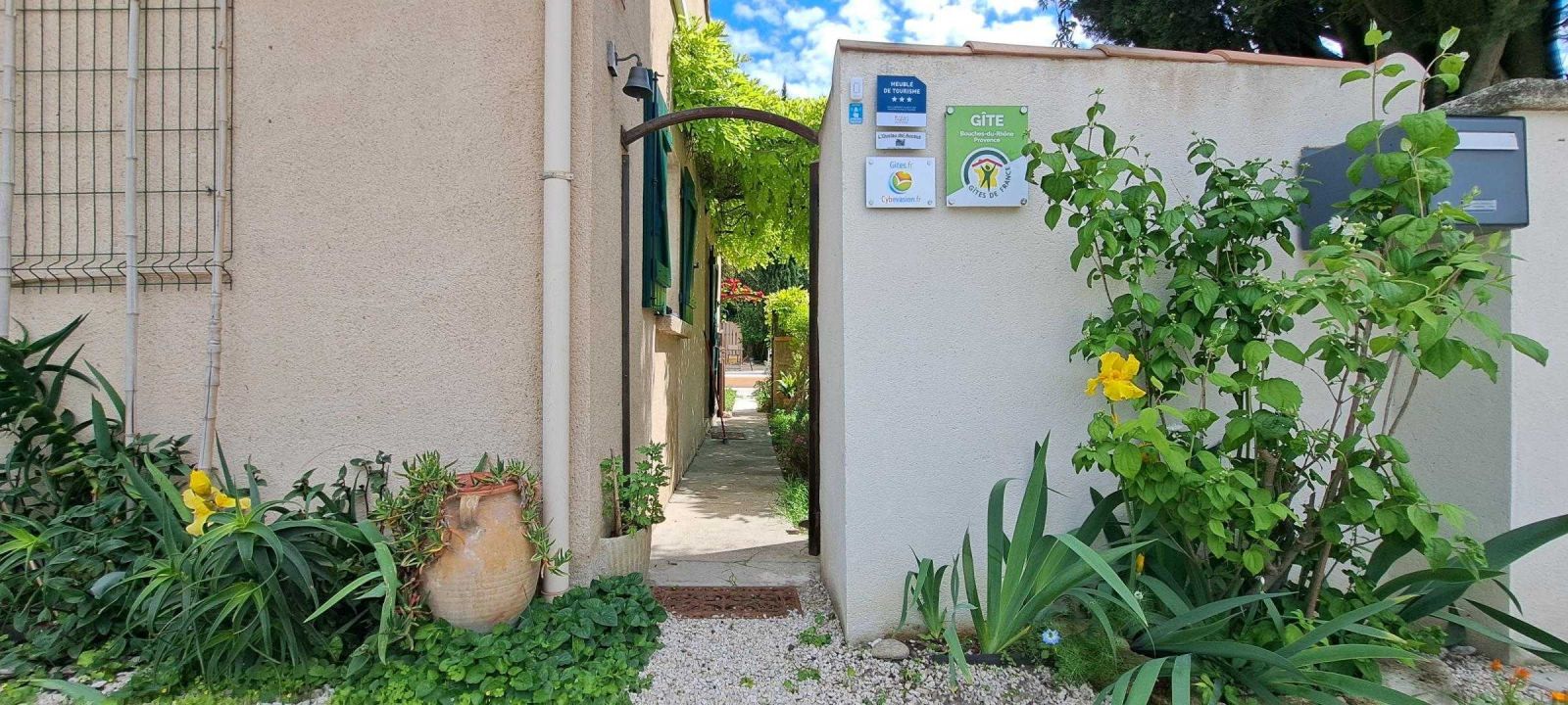 © Gîtes de France Tonnelle & sa Glycine sur l'entrée de L'Oustau dei Aucèus.