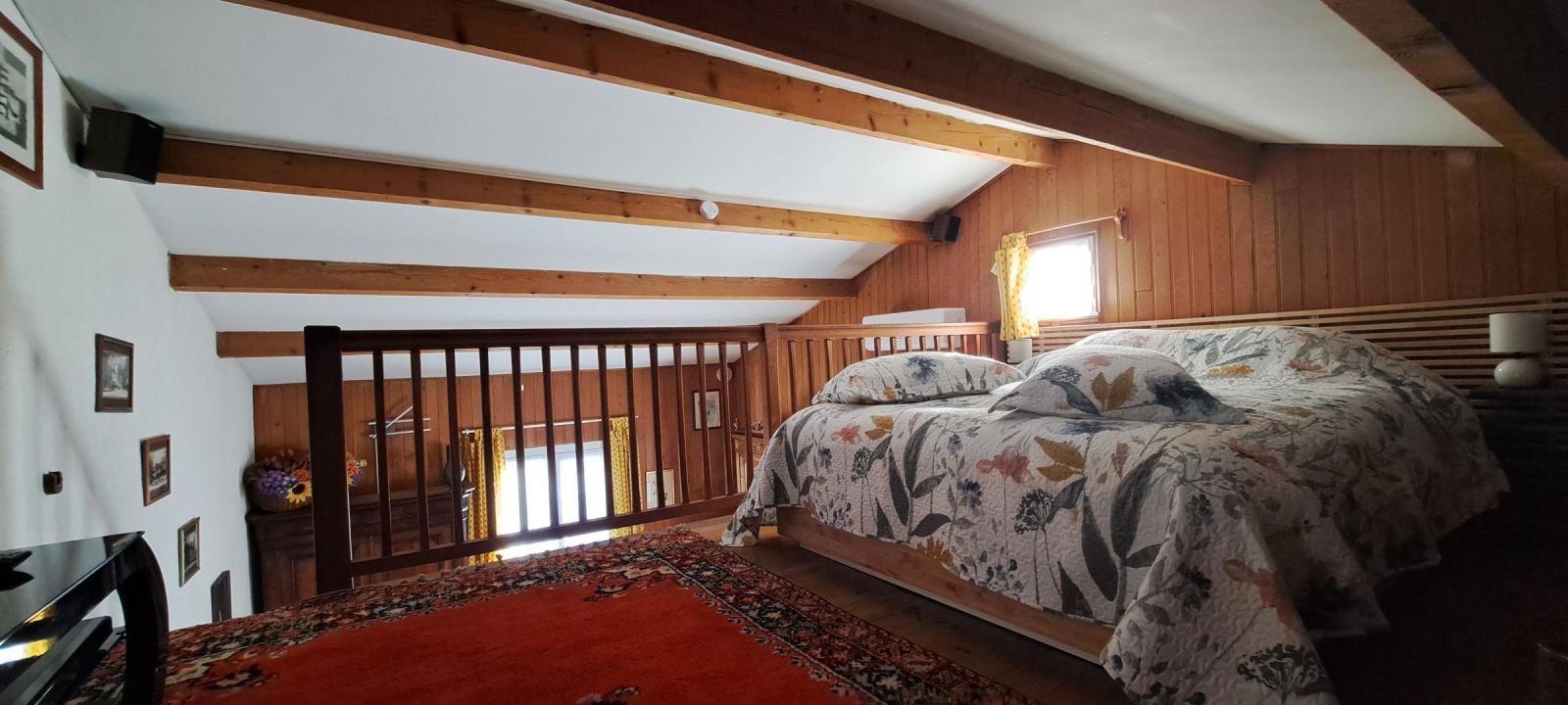 Mezzanine à l'étage avec 1 lit 2 personnes 160x200cm, TV écran plat 40" connectée (Amazon Prime) Home-Cinéma 5.1 avec lecteur Blu-ray/DVD et console de jeux PS3.