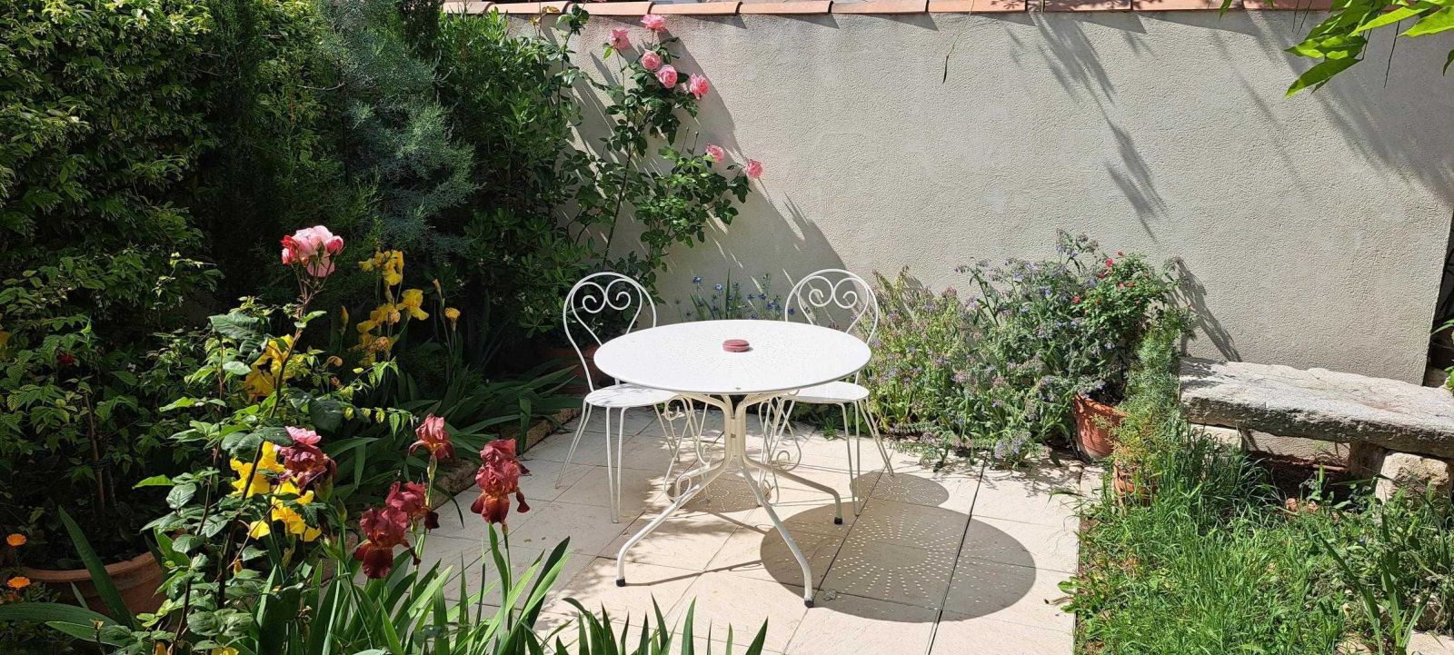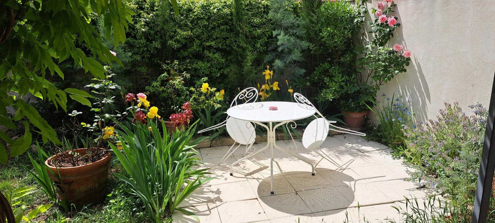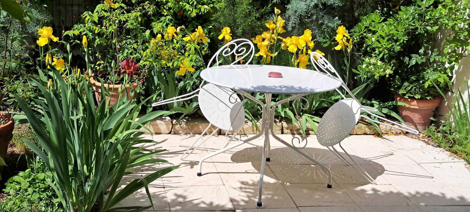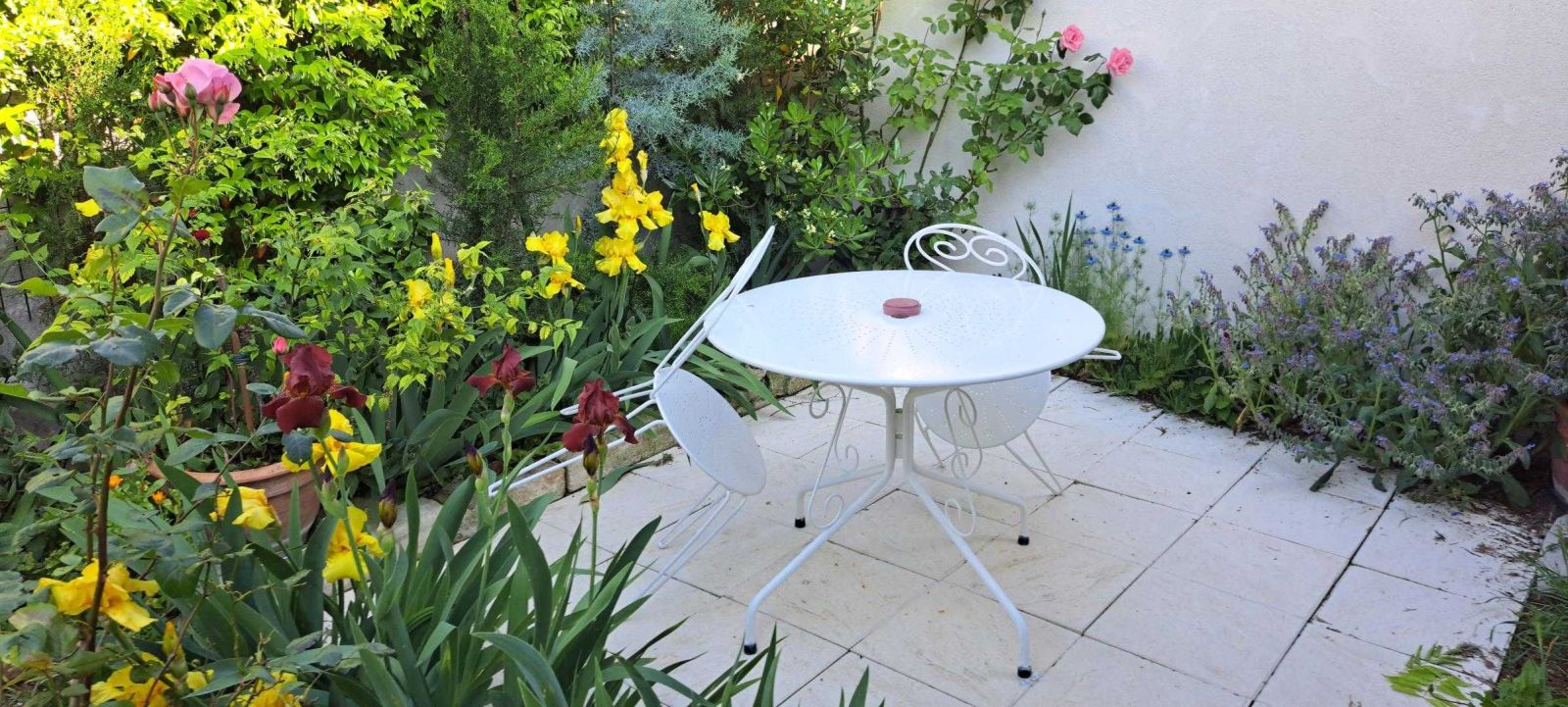 © Gîtes de France Quiétude de la Terrasse avec ses Iris en fleurs.