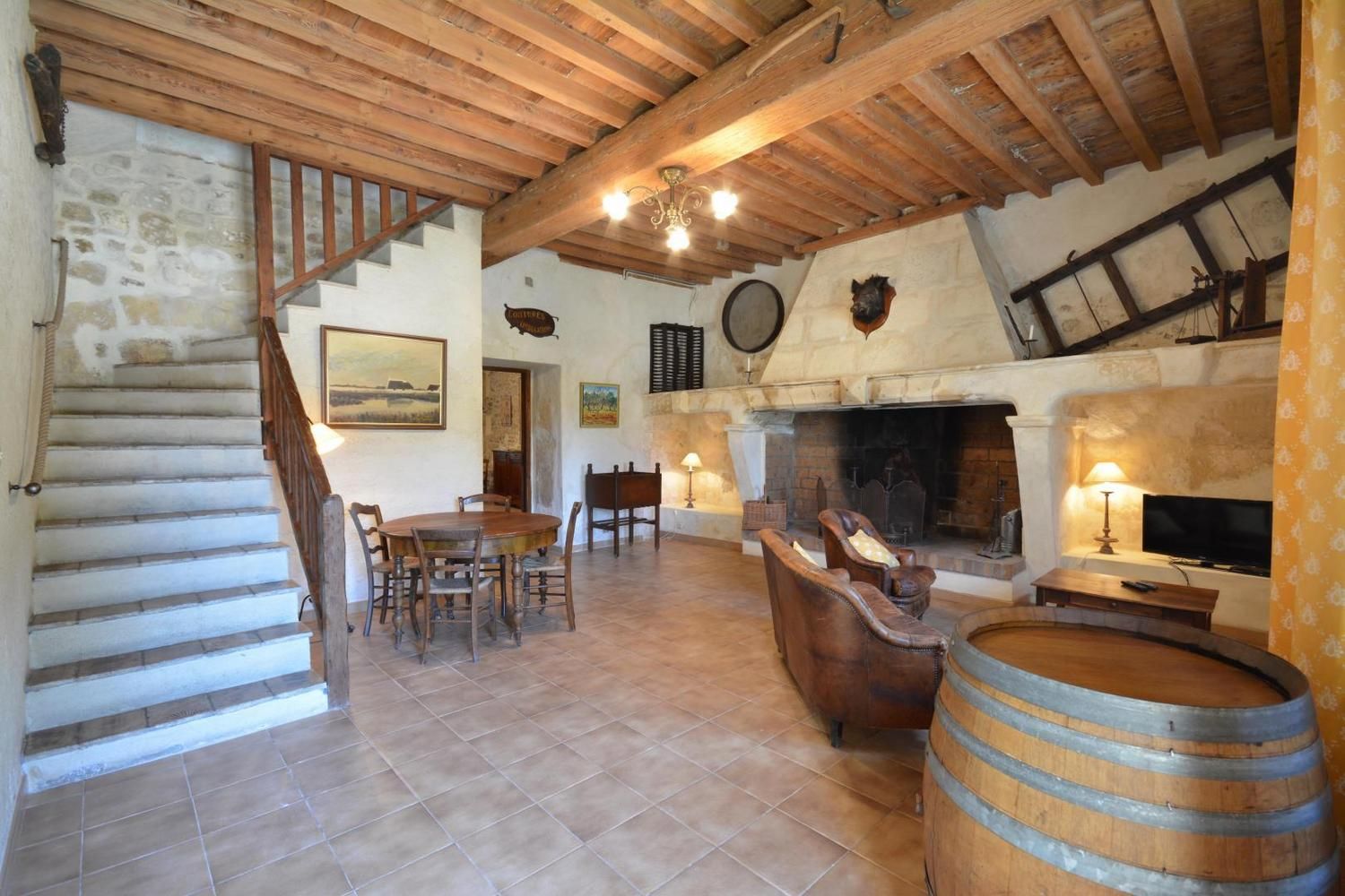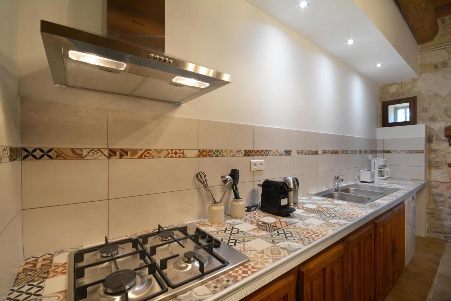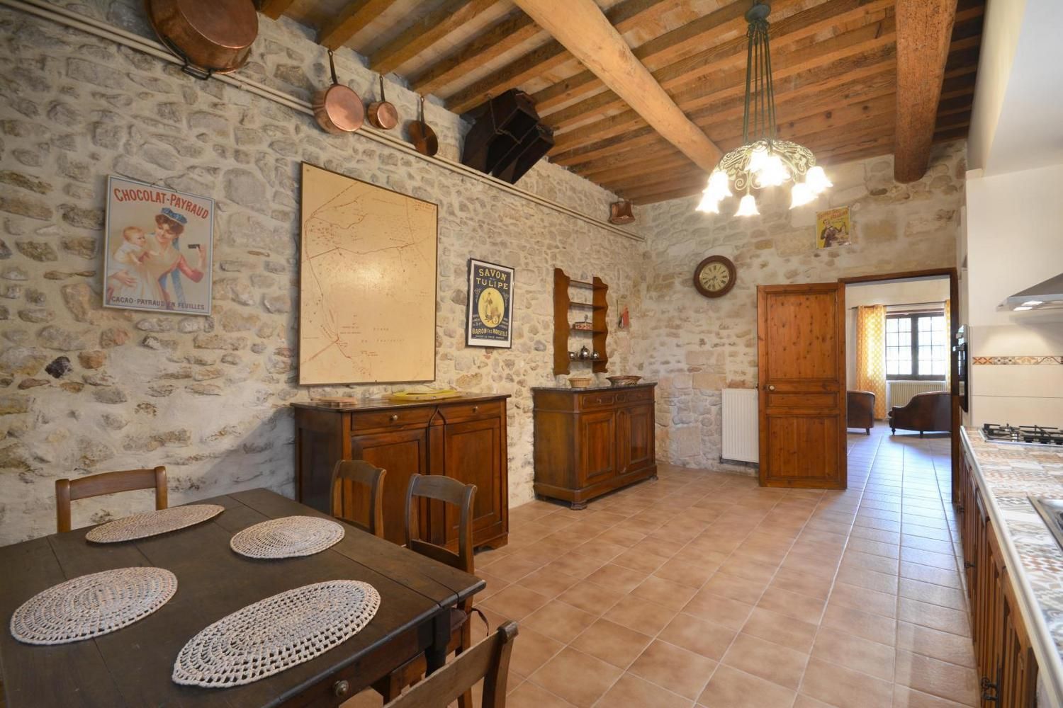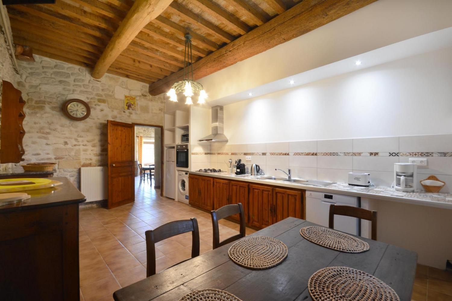 Rez de Chaussée : séjour avec grande cheminée camarguaise, fauteuils et TV écran plat. Cuisine (réfrigérateur/congélateur, plaque 4 feux gaz, lave-linge, lave-vaisselle, micro-ondes, machine Nespresso à capsules, four et hotte aspirante).