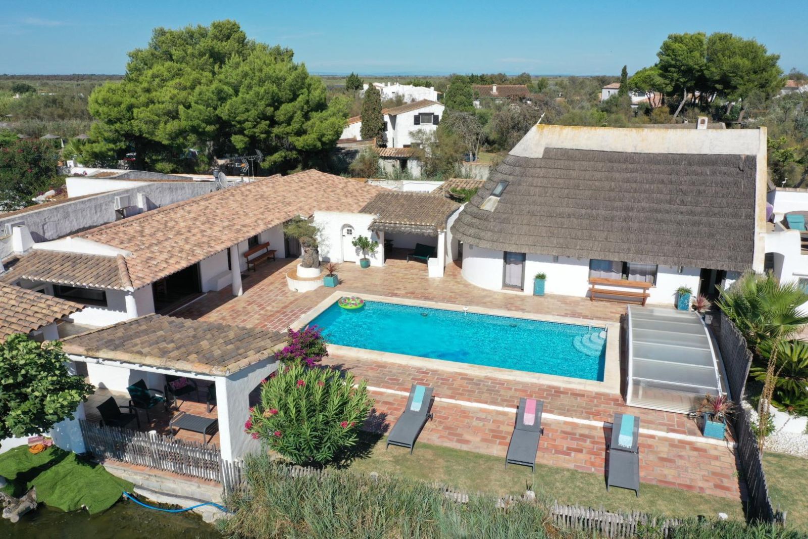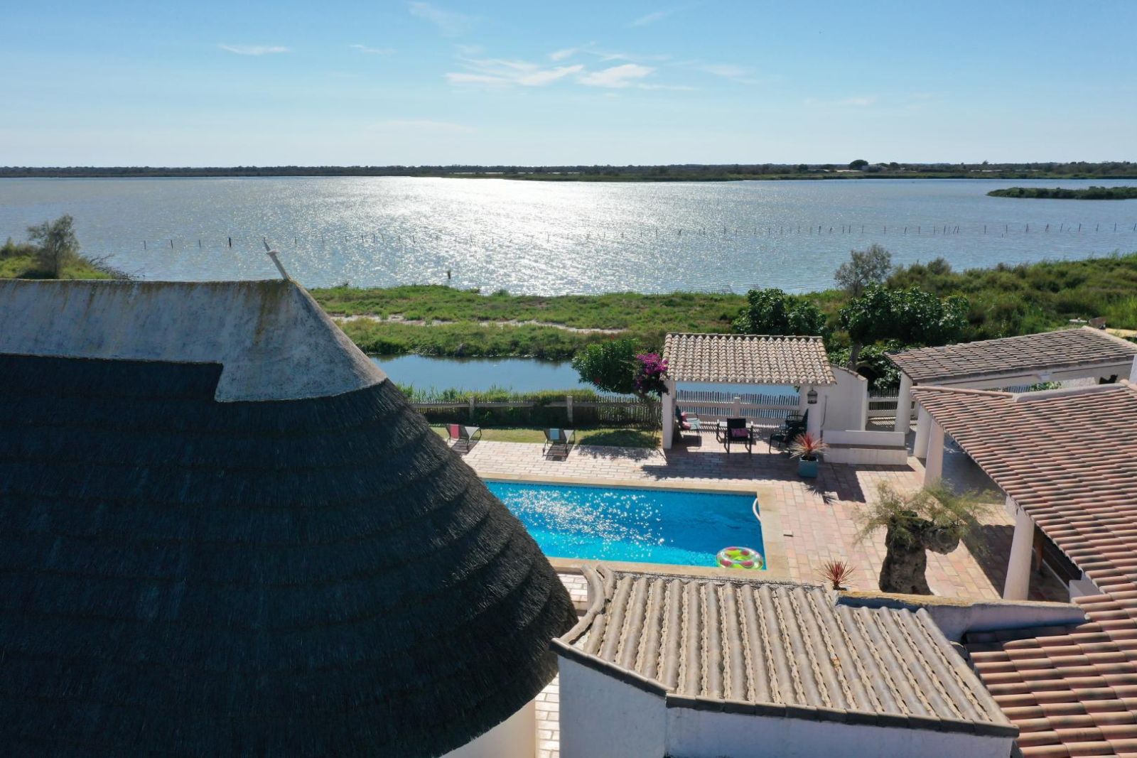 Vous pourrez profiter d'une piscine (au chlore chauffée de Mai à fin septembre 5x10 profondeur 1m20 à 2m protégée par un abris télescopique) , parfaite pour se rafraîchir durant les chaudes journées d'été, ou vous détendre sur la terrasse ensoleillée le tout en ayant une vue dégagée sur l'étang des Launes.
