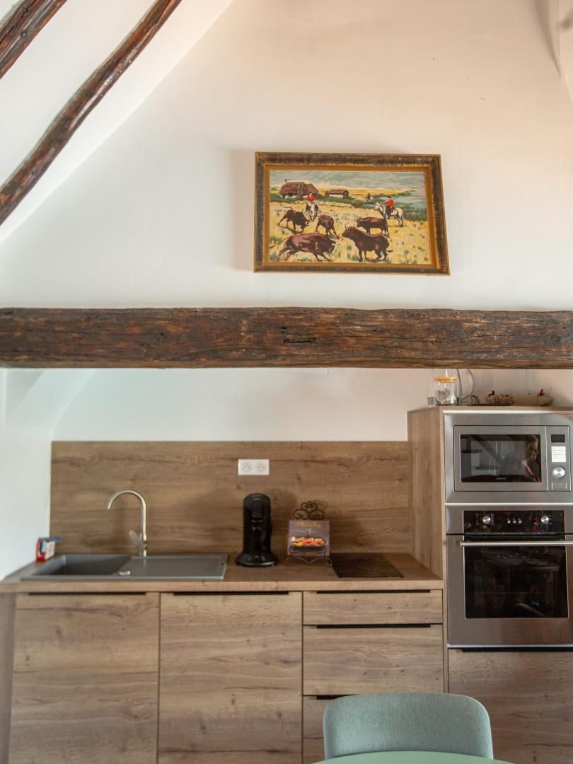 Le gîte est idéalement situé à proximité des Saintes-Maries-de-la-Mer, offrant un accès rapide aux plages de sable fin, aux balades à cheval, aux marais salants et à la réserve naturelle de la Camargue. Vous pourrez découvrir les traditions locales, les taureaux camarguais et les flamants roses qui peuplent la région.
