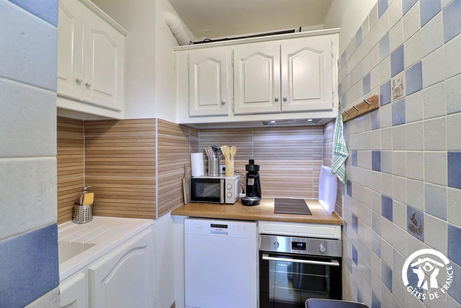 - Petit coin cuisine mais bien équipé : lave-vaisselle, four, 2 feux induction, hotte aspirante, micro-ondes. Réfrigérateur/congélateur et petit électroménager dans la pièce de vie.