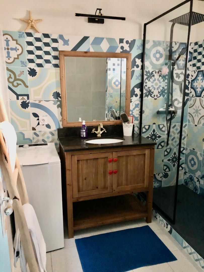 - Salle d'eau avec douche italienne, meuble vasque, lave-linge et wc.