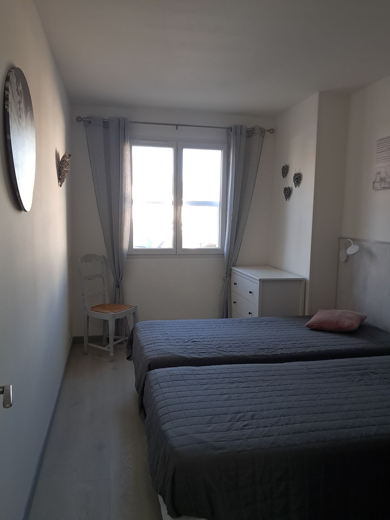 Au sein d'un quartier résidentiel, à deux pas de toutes les commodités, coquet appartement entièrement climatisé, équipé pour 4 personnes avec 2 lits 90 cm et canapé convertible 160 cm.