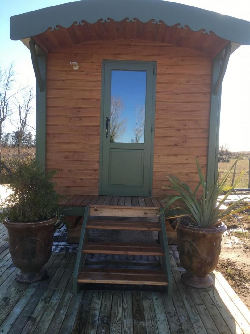 Au cœur de la Camargue, entre marais, chevaux et taureaux, la Roulotte de Mouchou est un très bel hébergement insolite avec terrasse et pergola, ainsi qu'une piscine partagée avec un autre gîte. Entièrement fabriquée en France, elle est composée d'une pièce principale avec coin cuisine (réfrigérateur, plaques, micro-ondes, bouilloire, cafetière), coin repas avec un mange debout et 4 chaises, un coin salon avec lit banquette et TV, et un coin nuit avec lit 140x190cm. Salle d'eau / WC séparée. Terrasse privative en bois avec pergola, salon de jardin et plancha. Un spa sera installé au printemps 2023. Piscine partagée avec un autre gîte 8x4m, profondeur 1.50m, ouverte de pâques à la toussaint. Accès libre à un espace vert de 1000 m² environ avec un autre salon de jardin, plan d'eau et palmiers. Climatisation réversible (incluse). Draps et linge de toilette inclus. Parking privatif à proximité de la roulotte. Possibilité de forfait ménage en fin de séjour au prix de 65 €. Cette roulotte confortable est idéalement située à 9km seulement de la mer et du centre des Saintes Maries de la Mer. Un point de chute parfait pour découvrir la Camargue telle que vous l'avez toujours rêvée, bercée par les sabots des chevaux camarguais et des taureaux, près des marais et sous le vol des flamants roses...