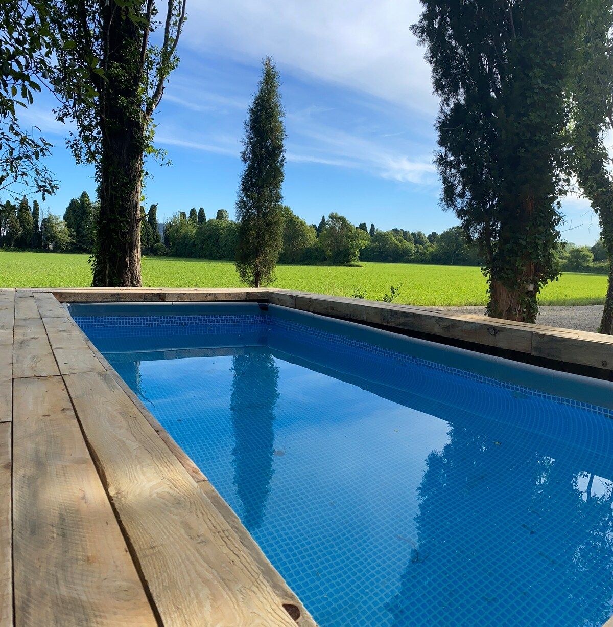 Cet ancien pigeonnier avec ses 2 espaces extérieurs d’environ 250m², piscine (5x3) et terrain de pétanque est composée :