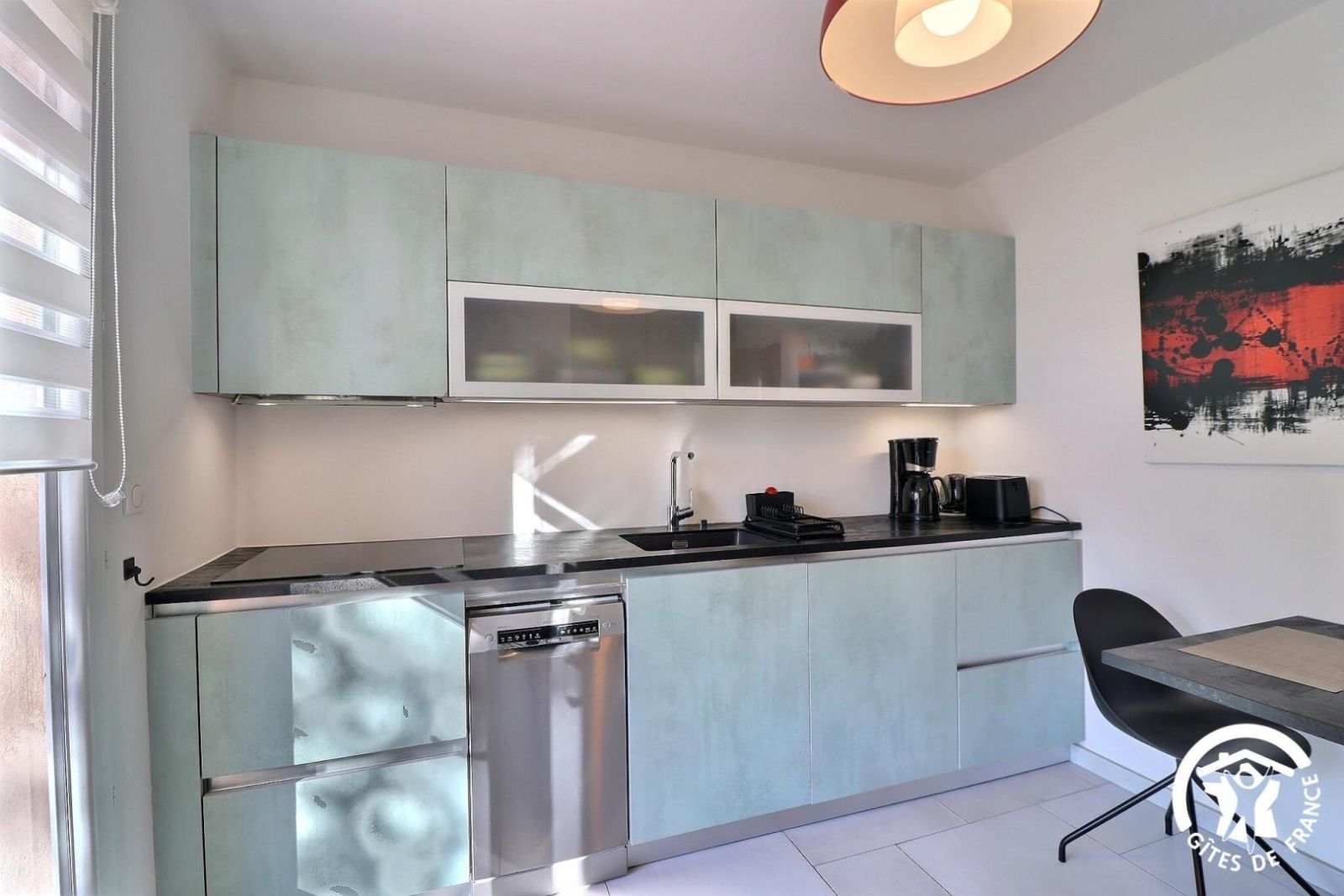 •Cuisine indépendante avec petit espace repas, entièrement équipée : plaque 3 feux induction, hotte, four, micro-ondes, lave-vaisselle, réfrigérateur/congélateur...