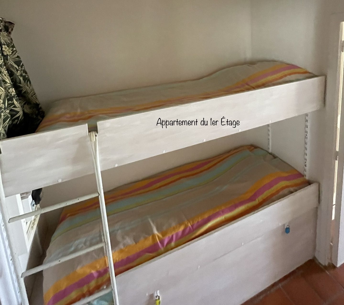Si l’entrée de ce studio est consacrée à un coin nuit avec 2 lits superposés d’une place chacun, le séjour accueille un confortable canapé lit de 2 personnes.