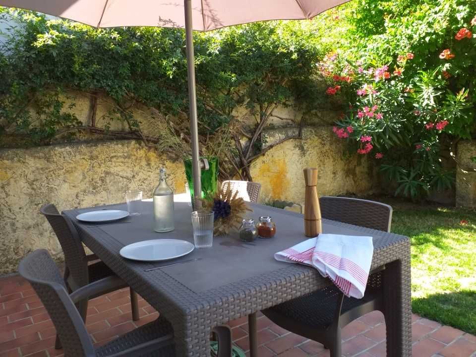 Le jardin, arboré et fleuri, dispose d'une terrasse ombragée par un jasmin odorant, d'un salon de jardin. En rez de chaussée, grande pièce à vivre avec coin détente (canapé/méridienne - couchage 1 personne), télévision écran plat. Espace repas. Cuisine intégrée avec nombreux rangements, four, micro ondes, frigo/congélateur et lave linge dans le cellier adjacent, petit électroménager.