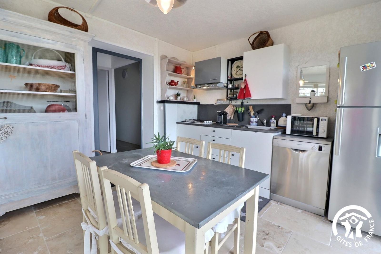 - Une cuisine / salle à manger avec plaque 4 feux gaz, hotte, lave-vaisselle, micro-ondes, réfrigérateur/congélateur grande capacité avec distributeur d'eau, espace repas pour 4 personnes et coin thé pour 2 personnes.