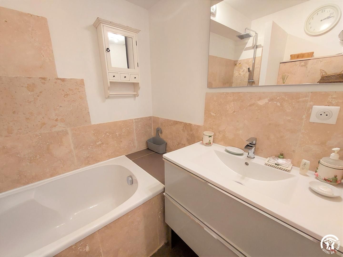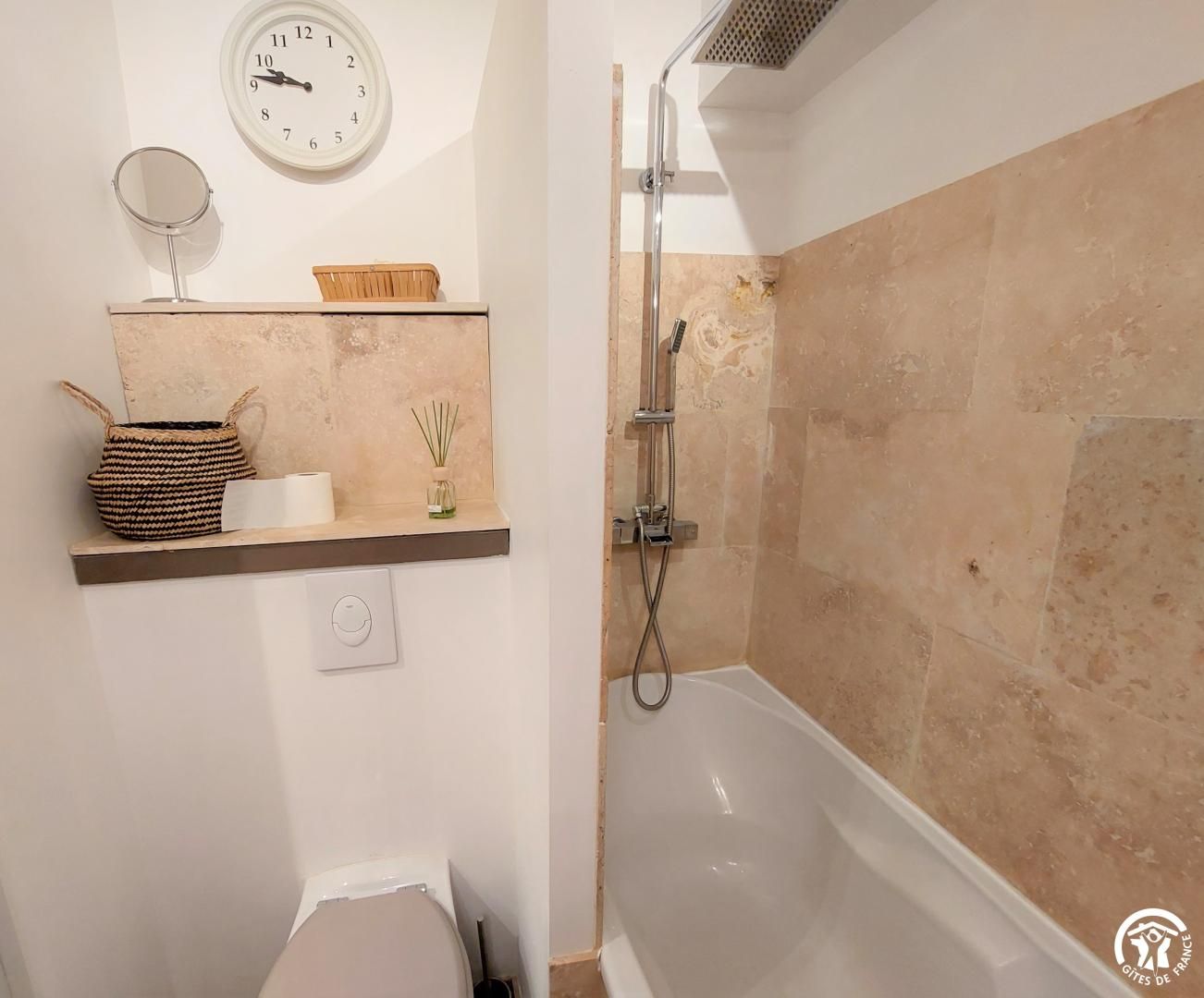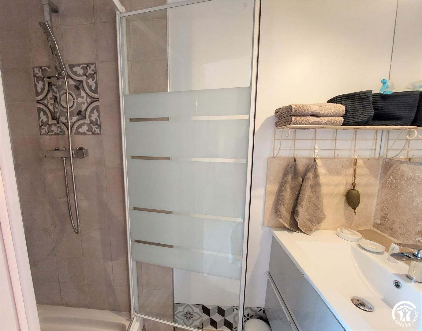 - Une 2ème chambre avec 1 lit 2 personnes 140x190cm, méridienne, piano, fauteuil et salle d'eau privative pour cette chambre avec douche 80x80cm et vasque.