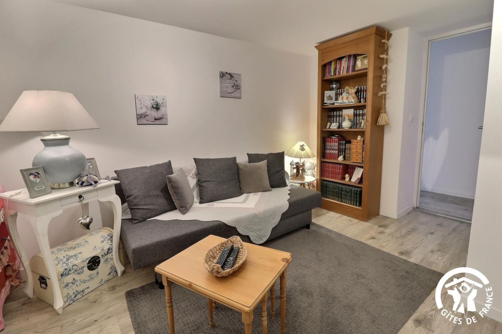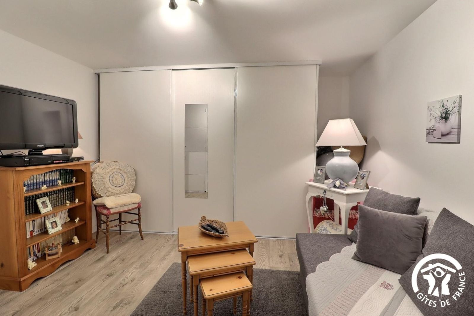 - Un salon (pas de fenêtre dans cette pièce) avec canapé convertible (couchage d'appoint possible pour 2 enfants supplémentaires avec supplément), TV écran plat, bibliothèques et guéridons.
