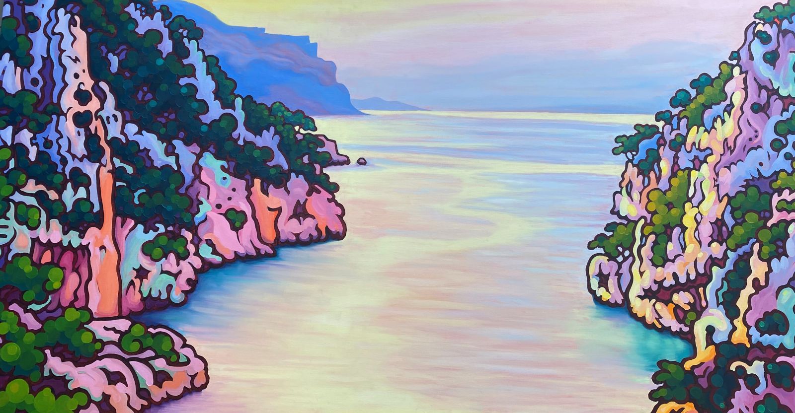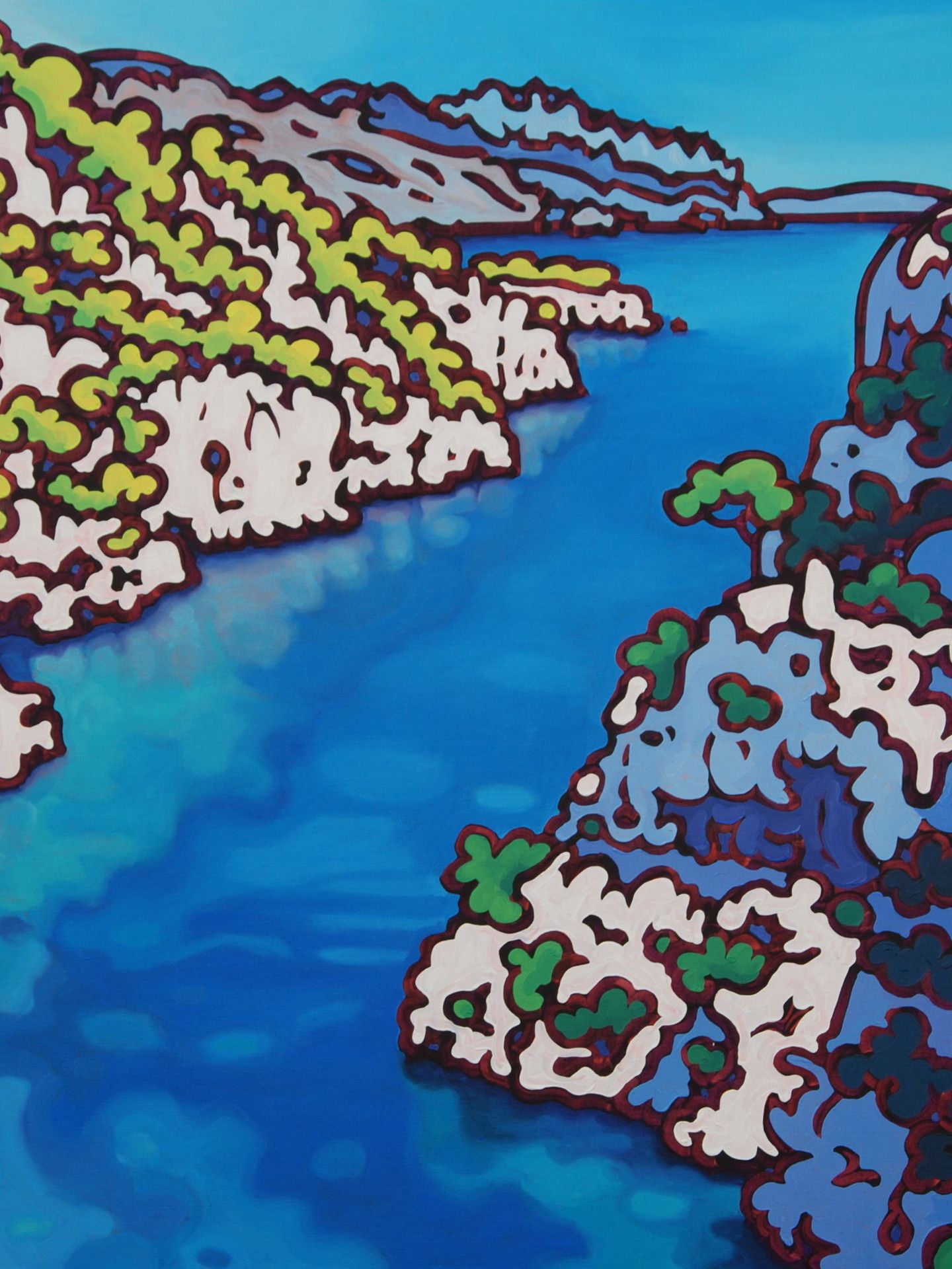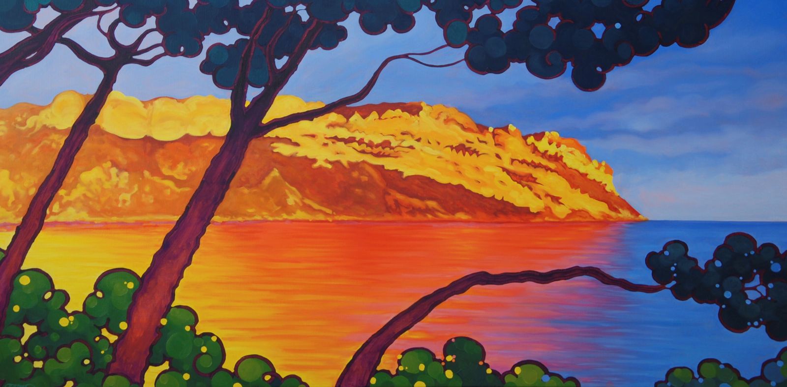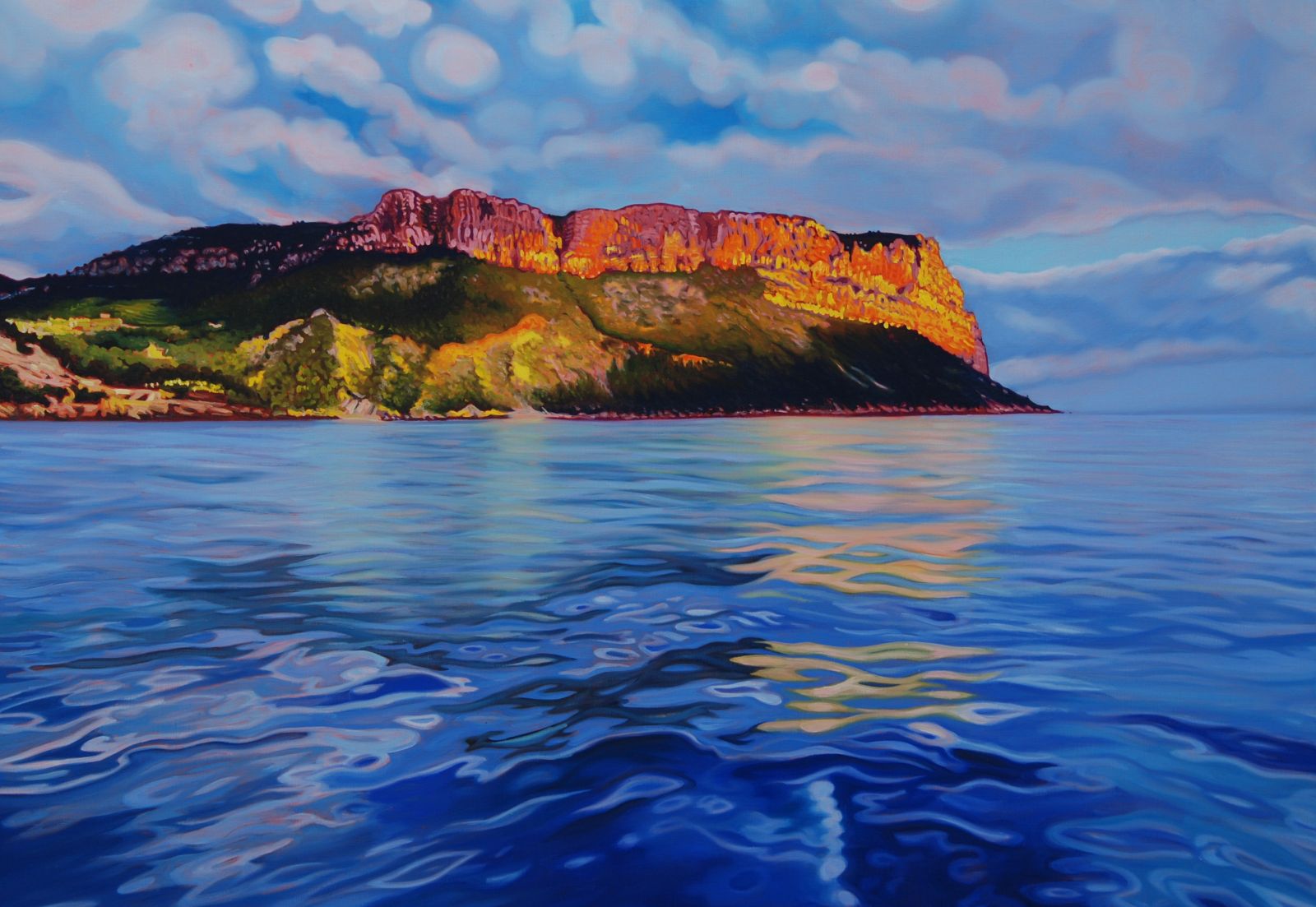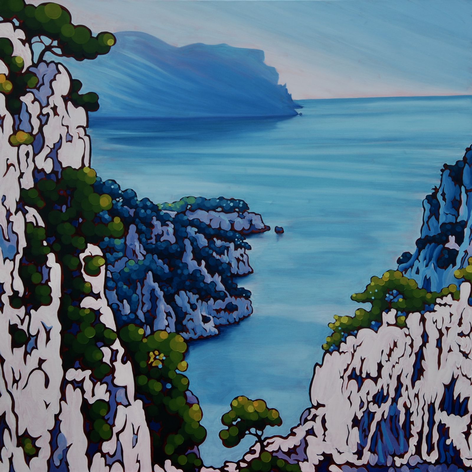 Peintre professionnelle depuis plus de trente ans, Gwendoline Pieters a construit une œuvre profondément ancrée dans le paysage méditerranéen. Ses toiles donnent à voir les Calanques, le Cap Canaille, le littoral marseillais et les rivages de Provence avec une intensité de couleurs et une structure qui dépassent la simple représentation. Le dessin, toujours présent en filigrane, organise la composition et soutient la dynamique de la couleur.