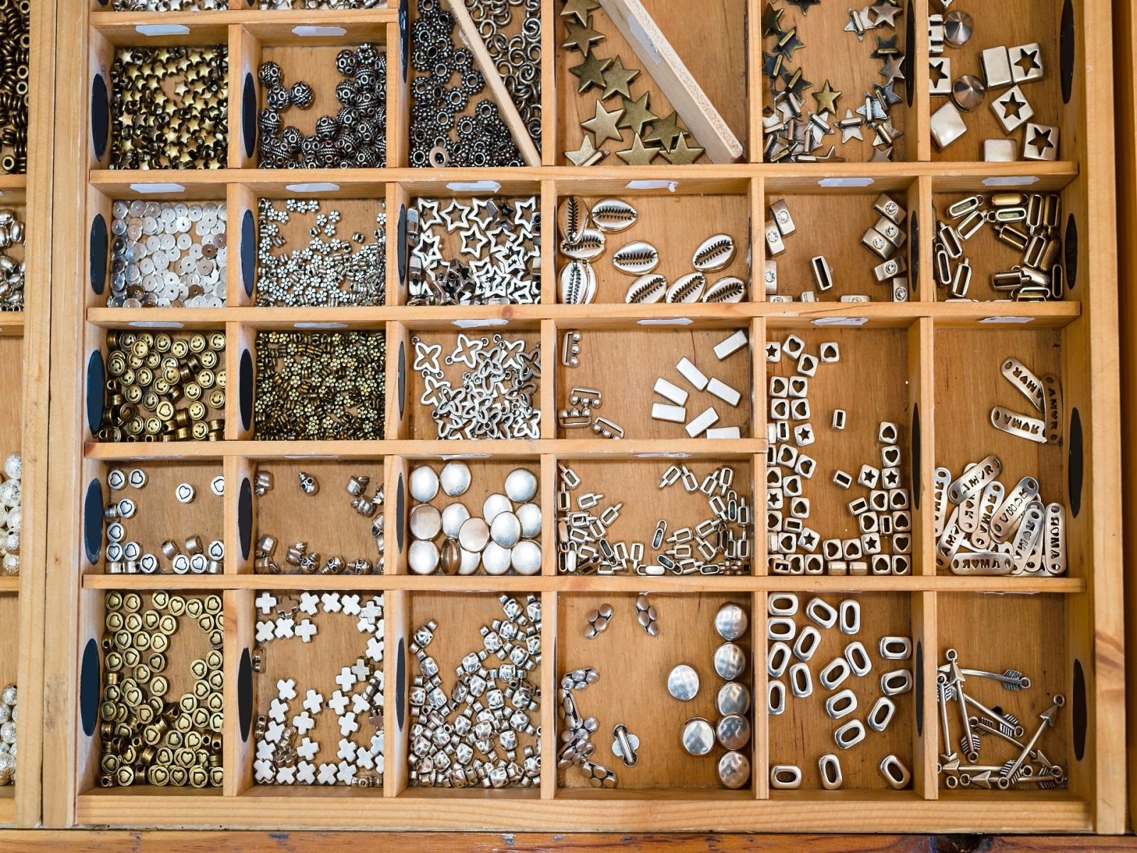 Des perles en pierres naturelles, cristal, bois… ; des pendentifs, chaines et apprêts en acier, laiton en plaqué or, argent 925... sont à votre disposition pour laisser libre cours à vos créations.