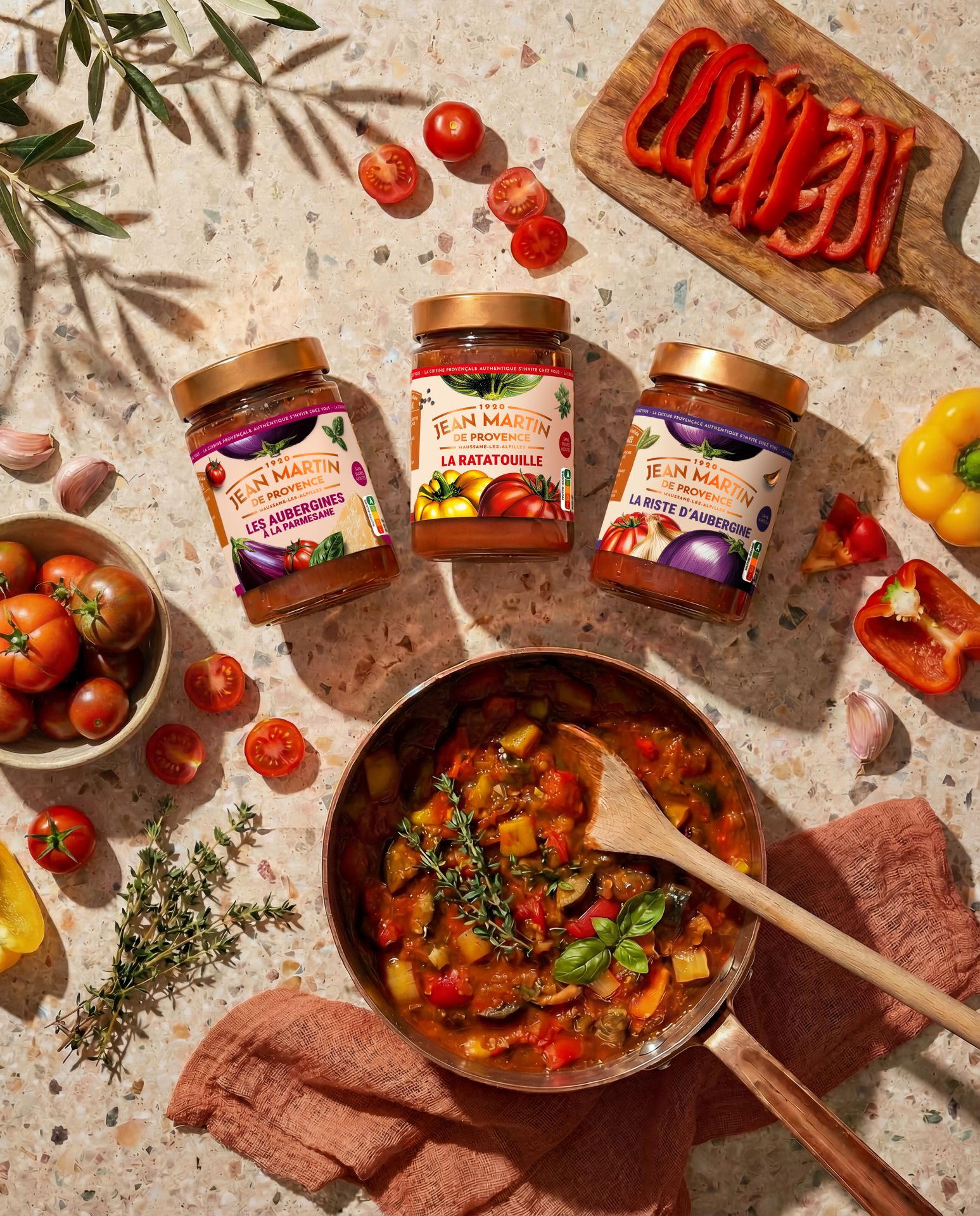 Depuis 1920, l’entreprise familiale Jean Martin élabore en Provence des recettes cuisinées à partir de légumes et d’olives soigneusement sélectionnés, sans colorants ni conservateurs, pour retrouver le vrai goût de la cuisine provençale.