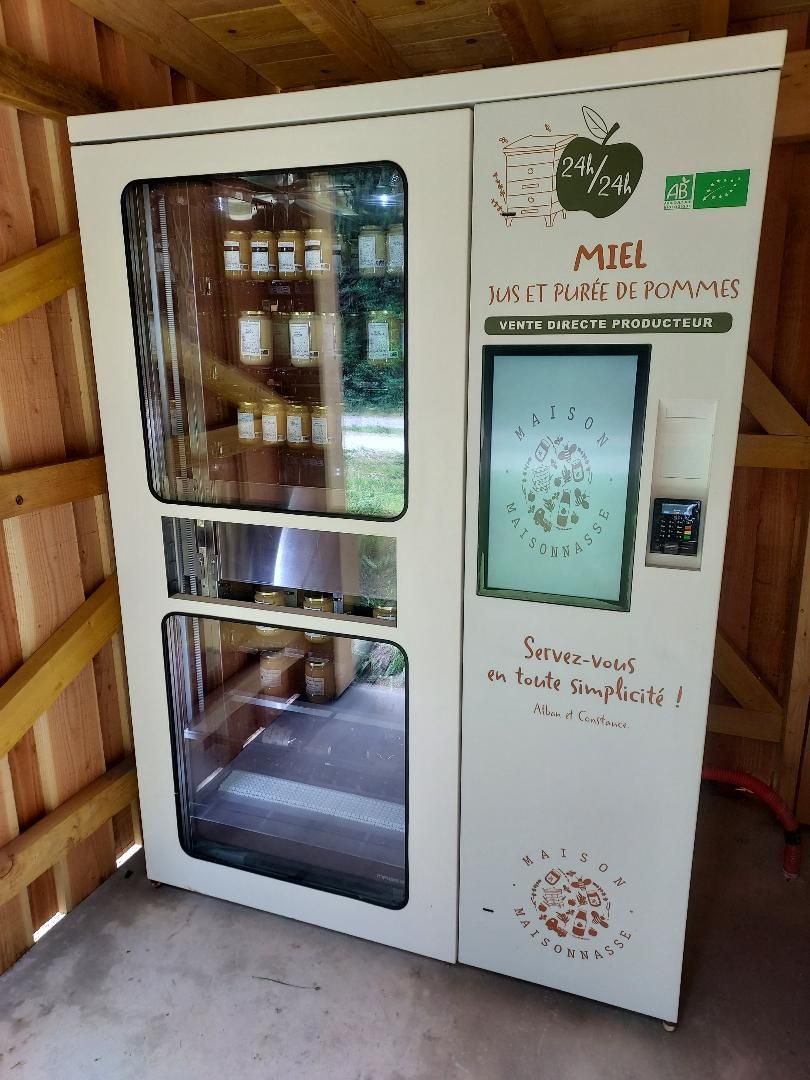 Un distributeur automatique en libre service est installé à l'entrée de la ferme pour une grande simplicité d'achat.