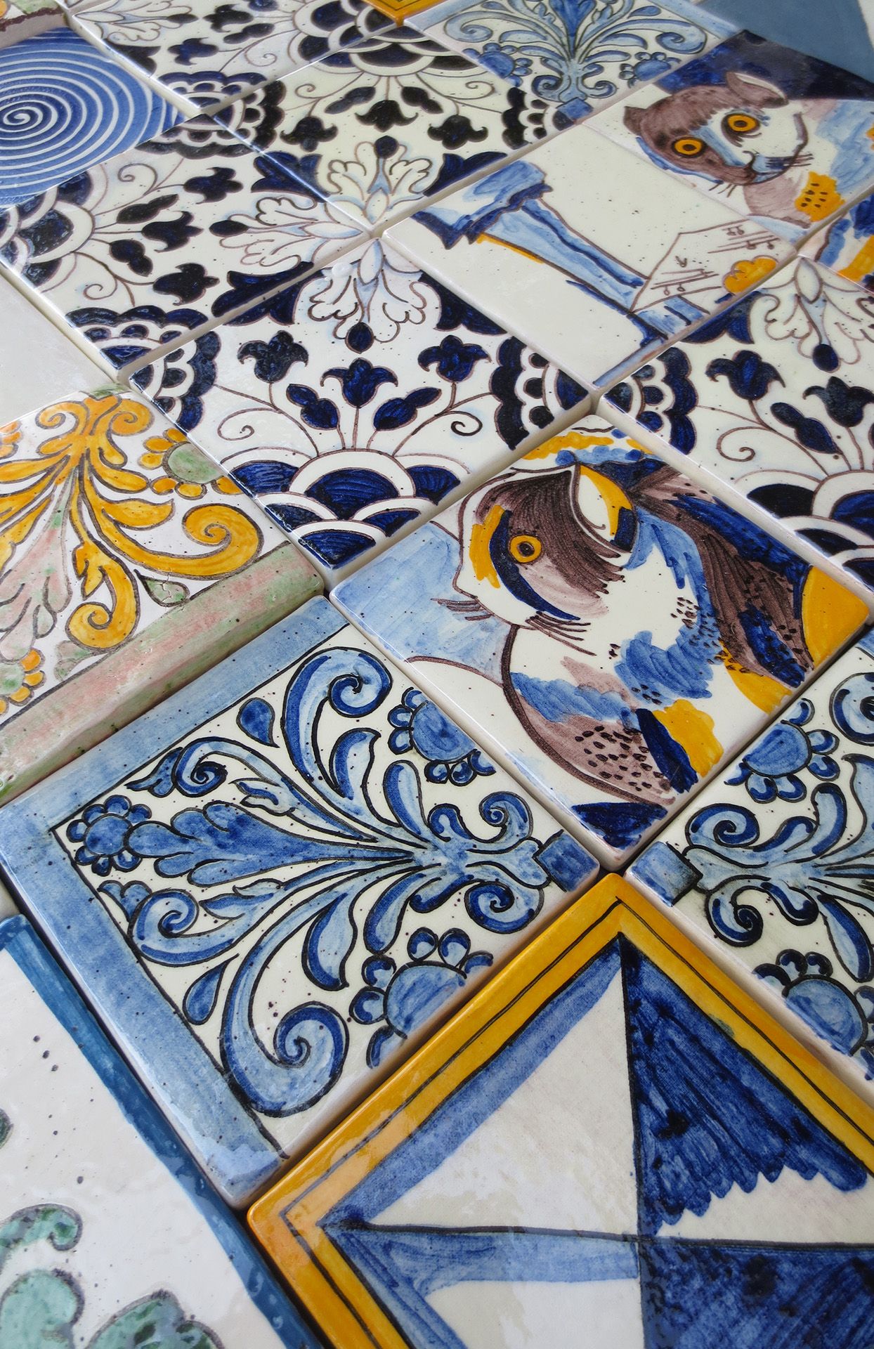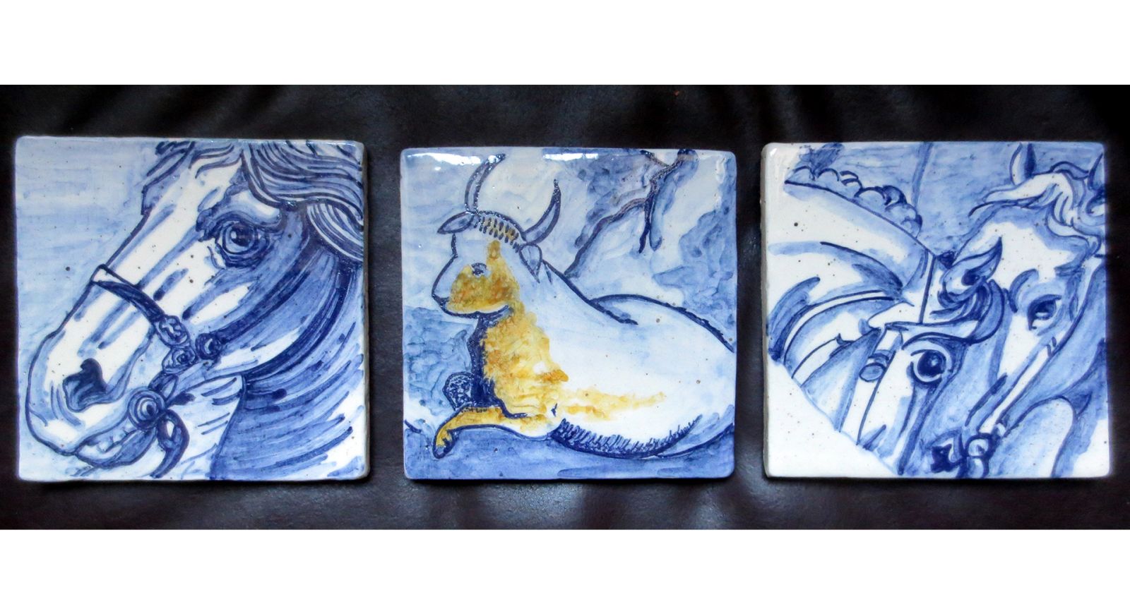 Vous trouverez de la vaisselle, des objets de décoration, mes personnages cocasses, des reproductions de carreaux anciens et ceux de ma création... De nombreux univers unis par une même technique : La Terre Vernissée.