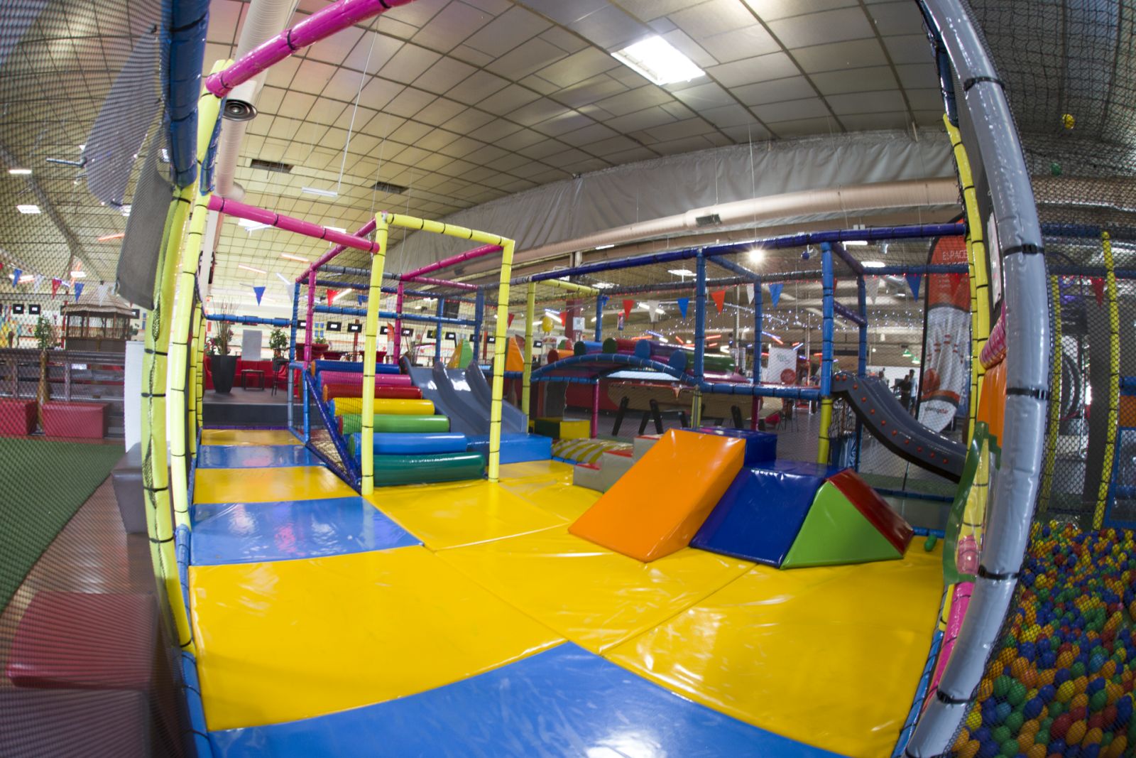 Pour le Striky Park on retrouve à l'intérieur un parcours ludique pour les 2/5 ans avec piscine à balles, un parcours sportif pour les 5/10 ans avec tour d'escalade, des trampolines, un château gonflable ou encore un jeu de Legos géants.