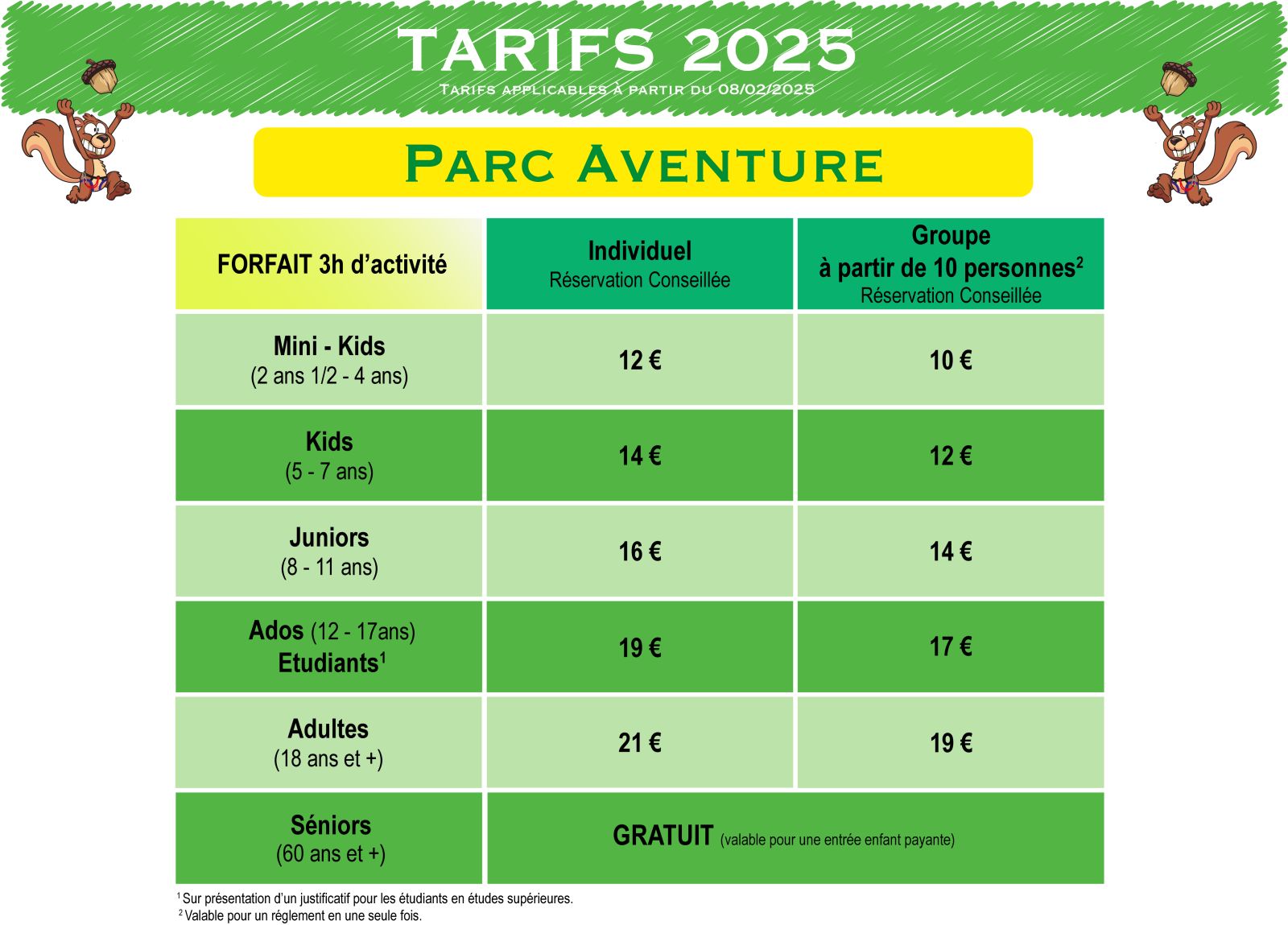 - Ados (12 à 17 ans) + Étudiants : 19 €