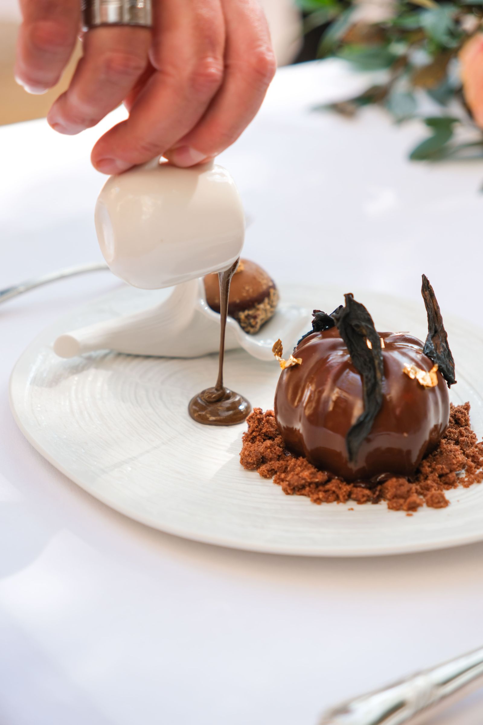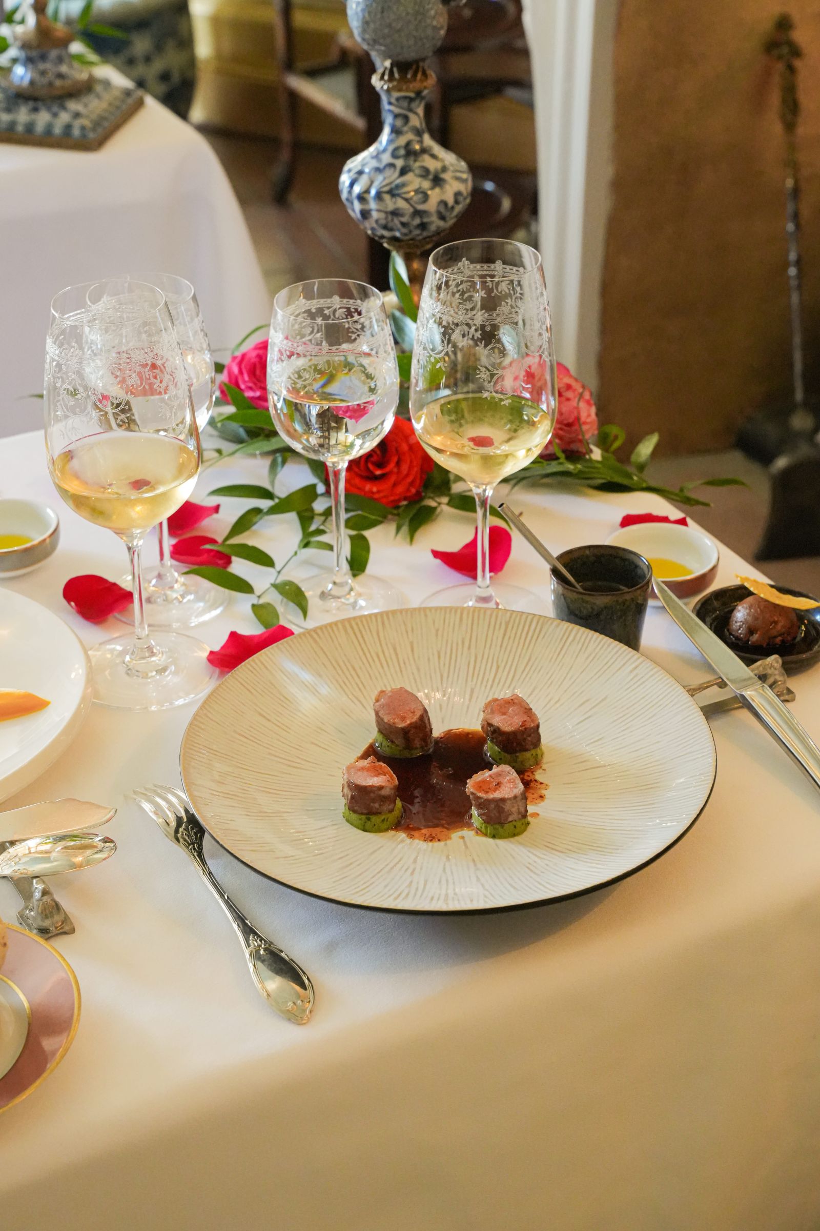 Poursuivez votre découverte au salon, où règne une ambiance cosy et intimiste, à l’image de la bastide. Confortablement installé dans des fauteuils crapauds, laissez-vous emporter par la créativité du Chef Christophe Gavot et de sa brigade.