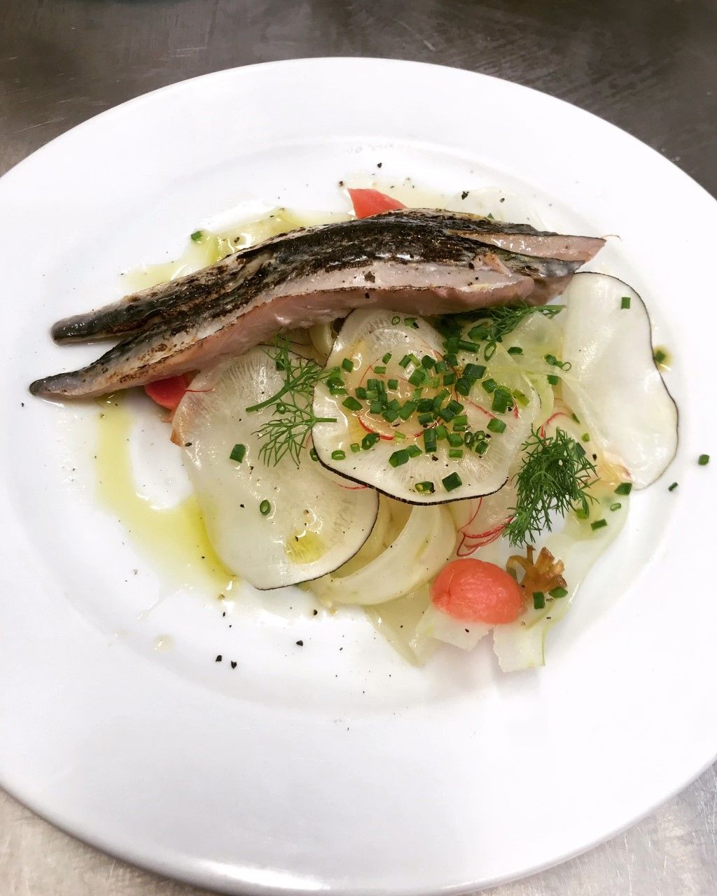 On y retrouve ainsi un menu avec une sélection d'entrées et plats de qualité, qui changera régulièrement au fil des saisons et des envies du chef.