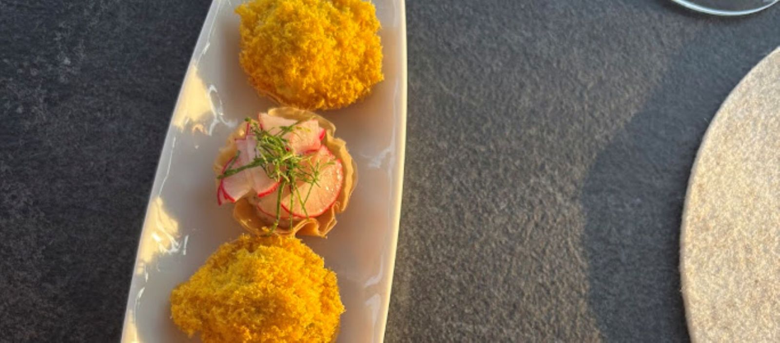 Au gré des saisons, vous pourrez découvrir son carpaccio de Saint Jacques et Oursin, son velouté de topinambour, son Bar ou encore les Langoustines..
