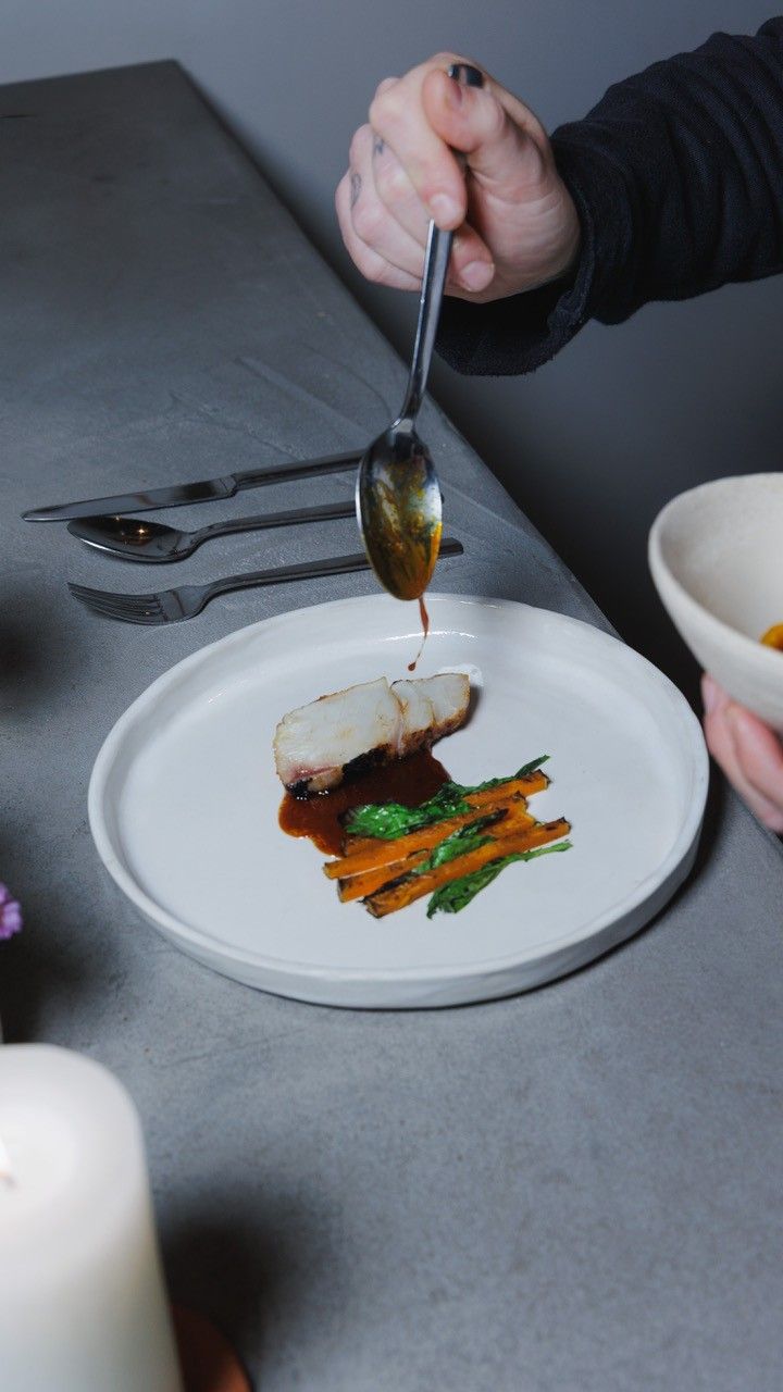 © ©Nicolas Carbo dressage d'un plat avec de la sauce