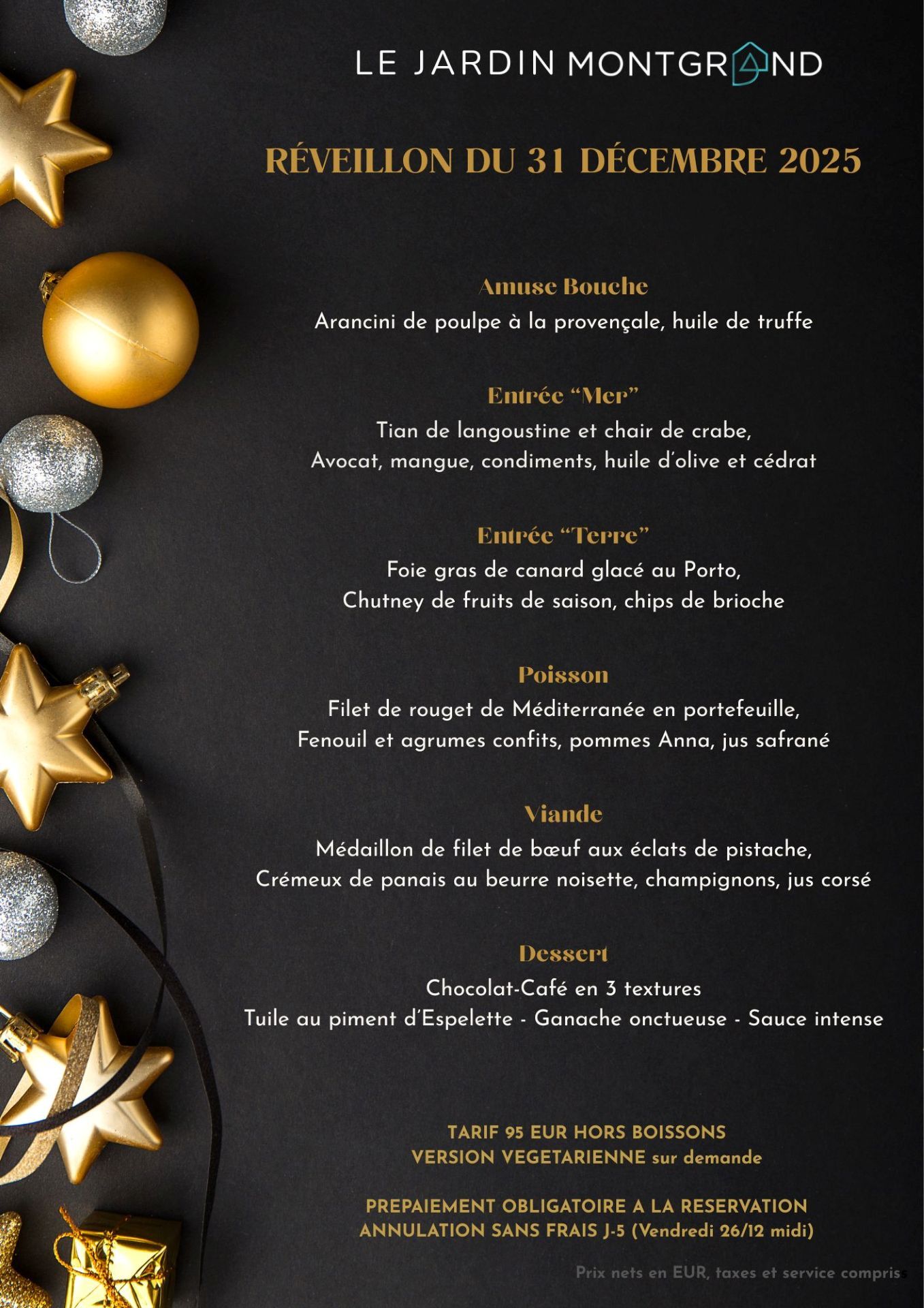 Diner Saint-Sylvestre, 120€ par personne et 50€ pour les enfants de -12 ans. :