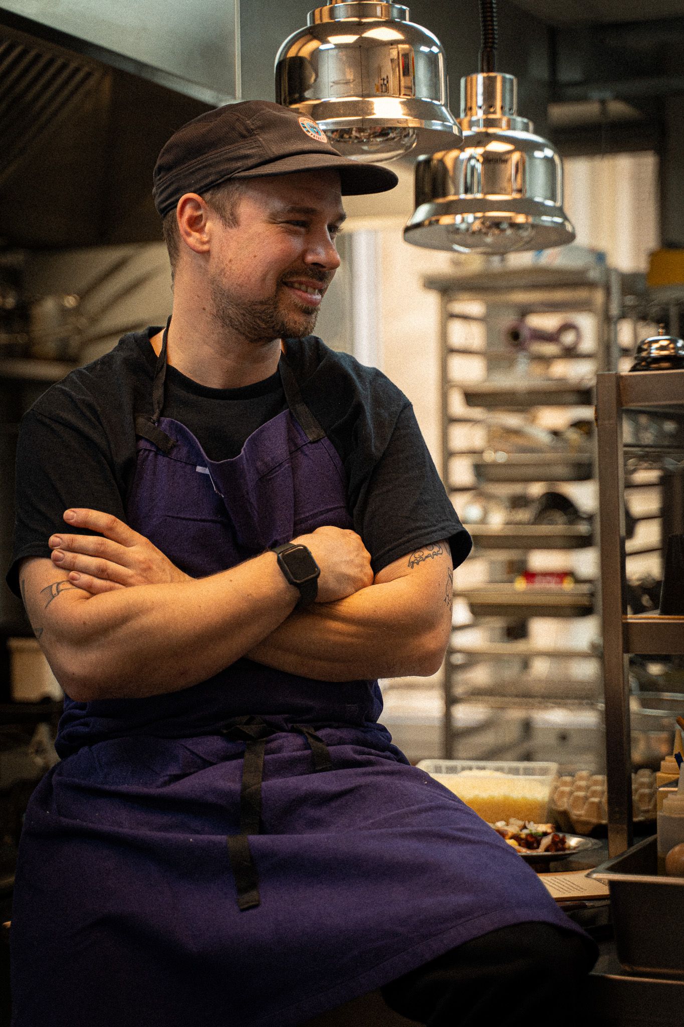 © ©restaurant Prosper chef en tablier dans sa cuisine